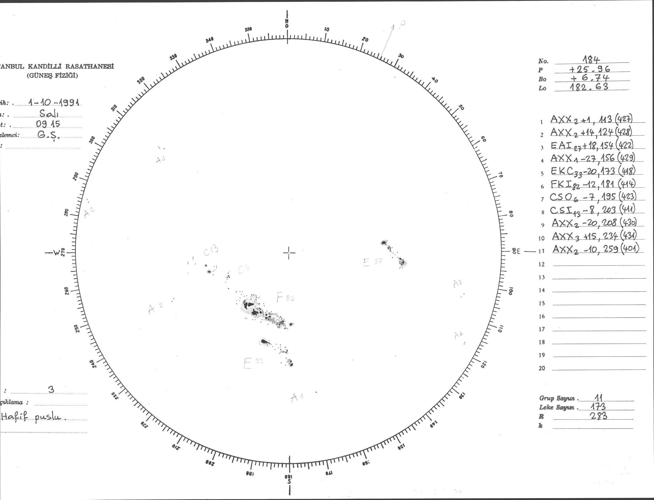 Güneş Lekesi Çizimi - 01.10.1991