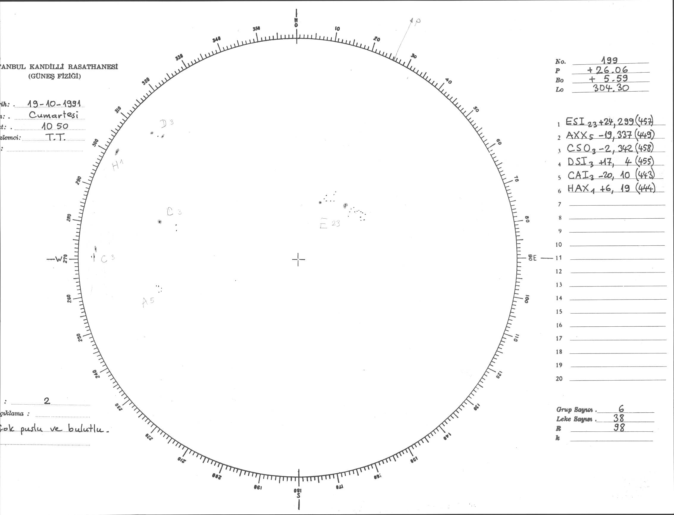 Güneş Lekesi Çizimi - 19.10.1991