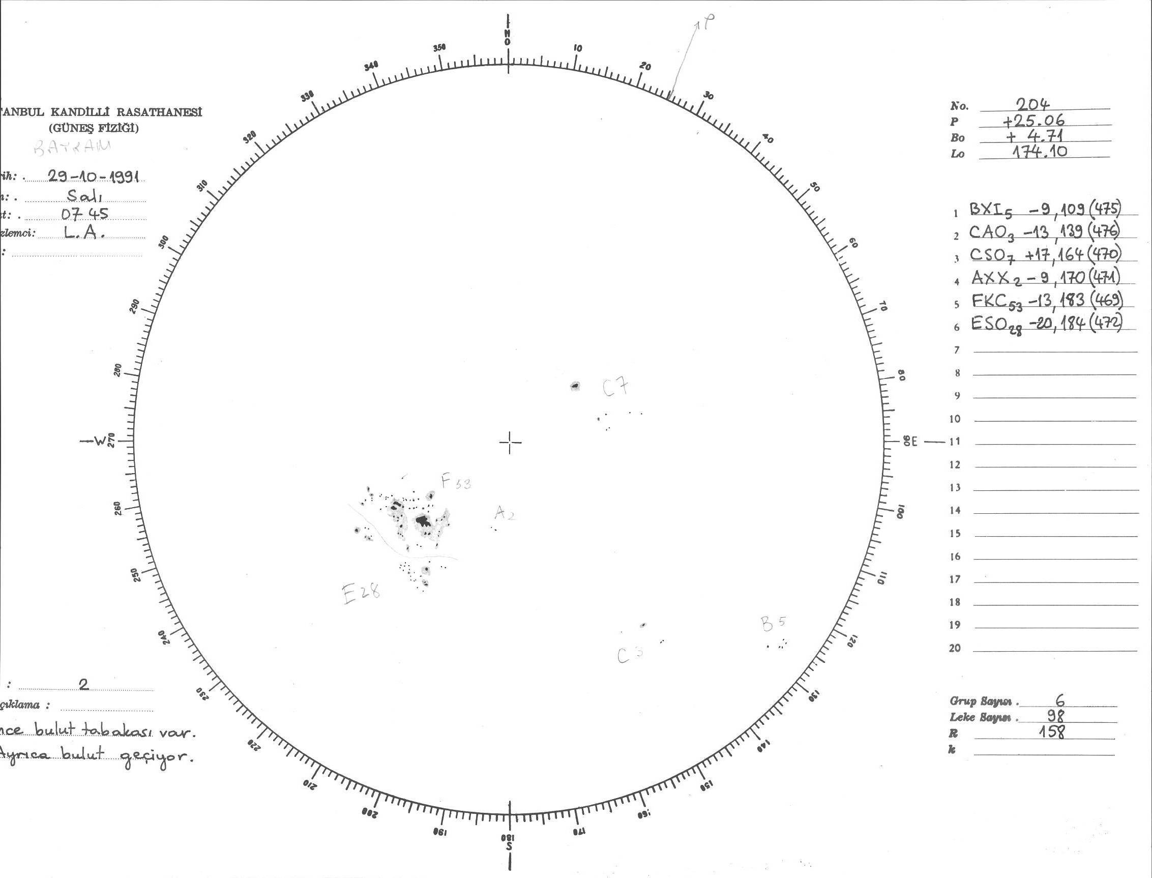 Güneş Lekesi Çizimi - 29.10.1991