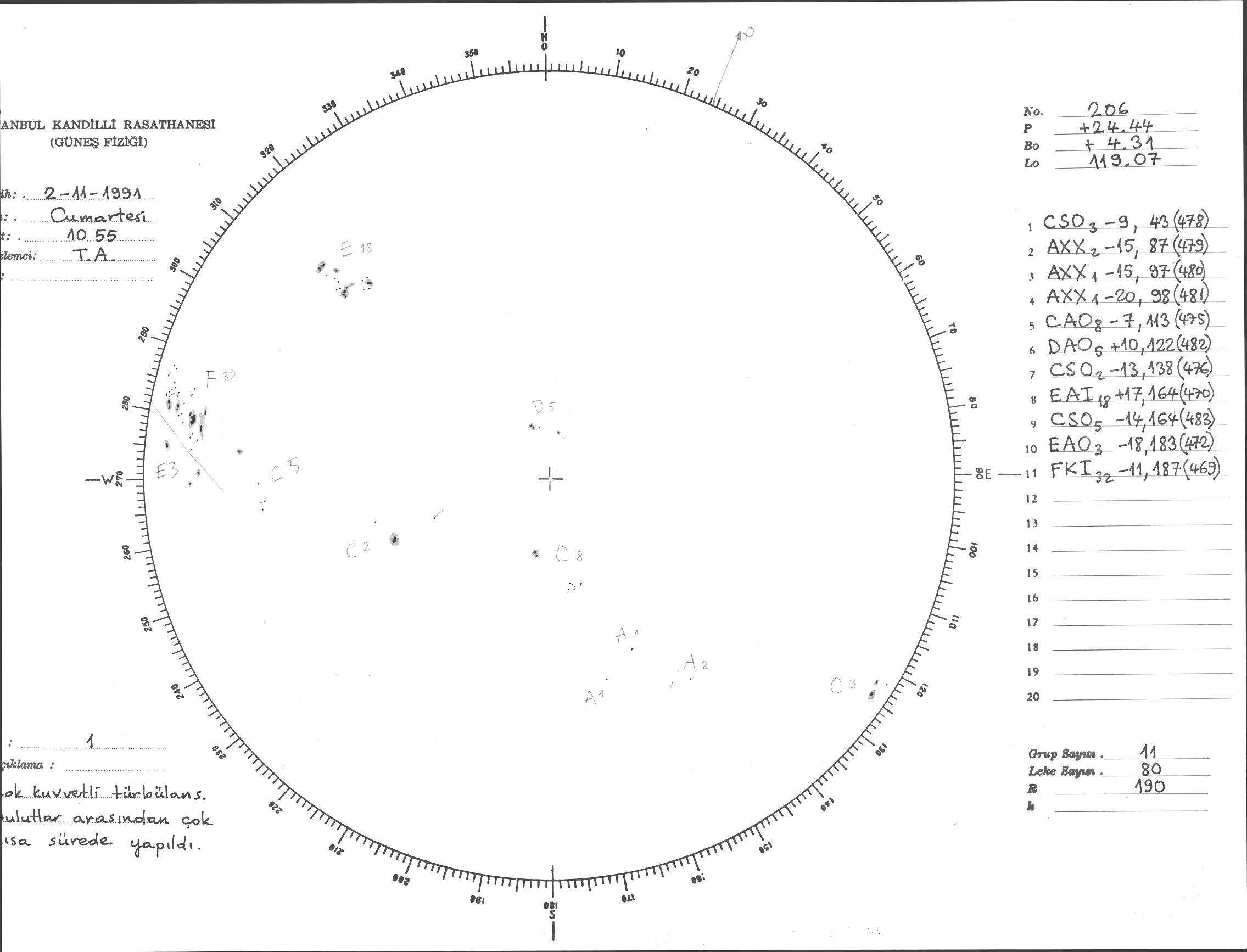 Güneş Lekesi Çizimi - 02.11.1991