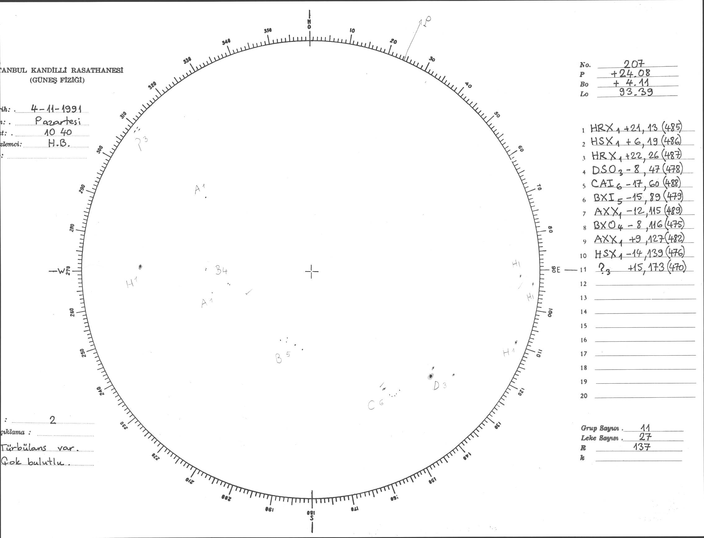 Güneş Lekesi Çizimi - 04.11.1991