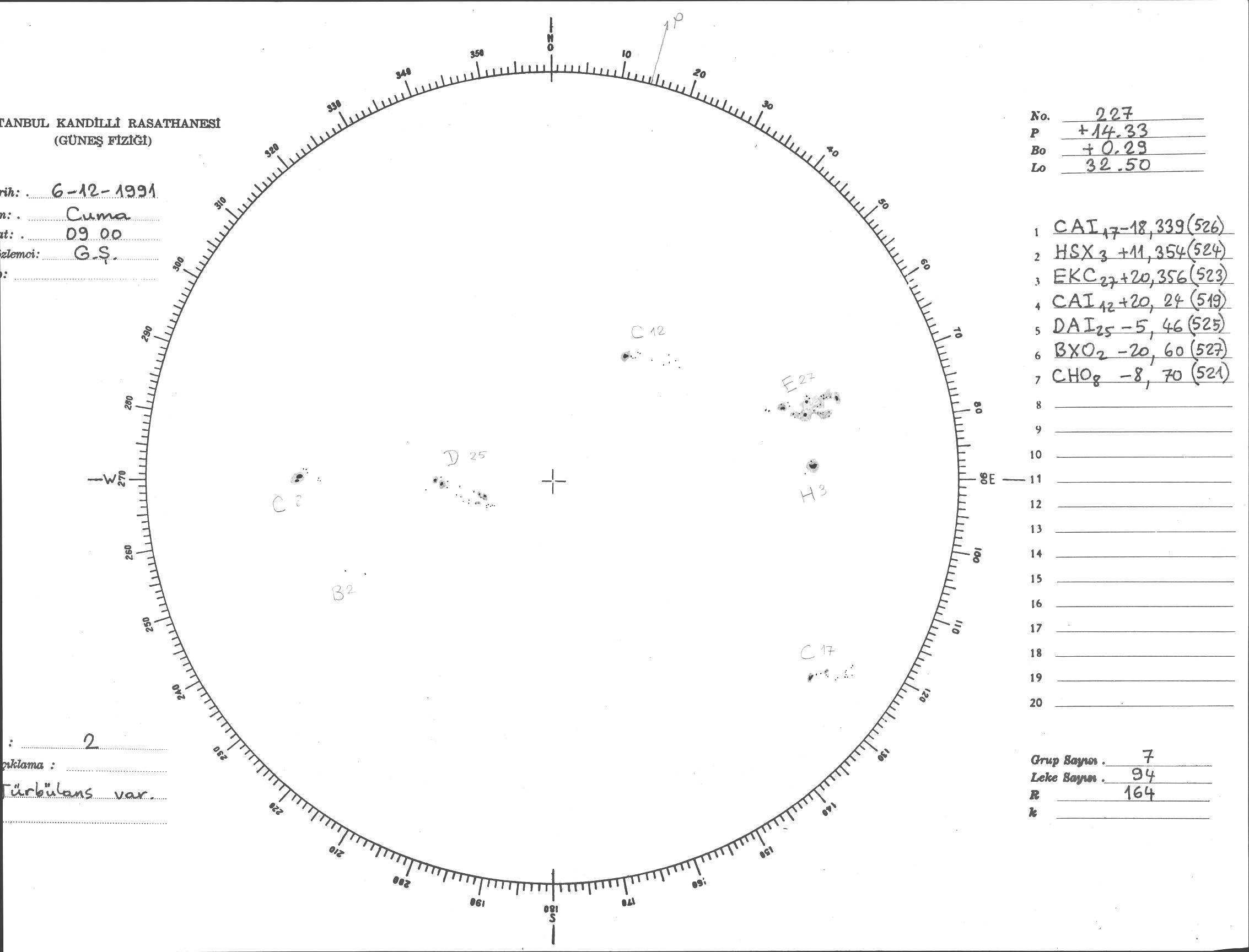 Güneş Lekesi Çizimi - 06.12.1991