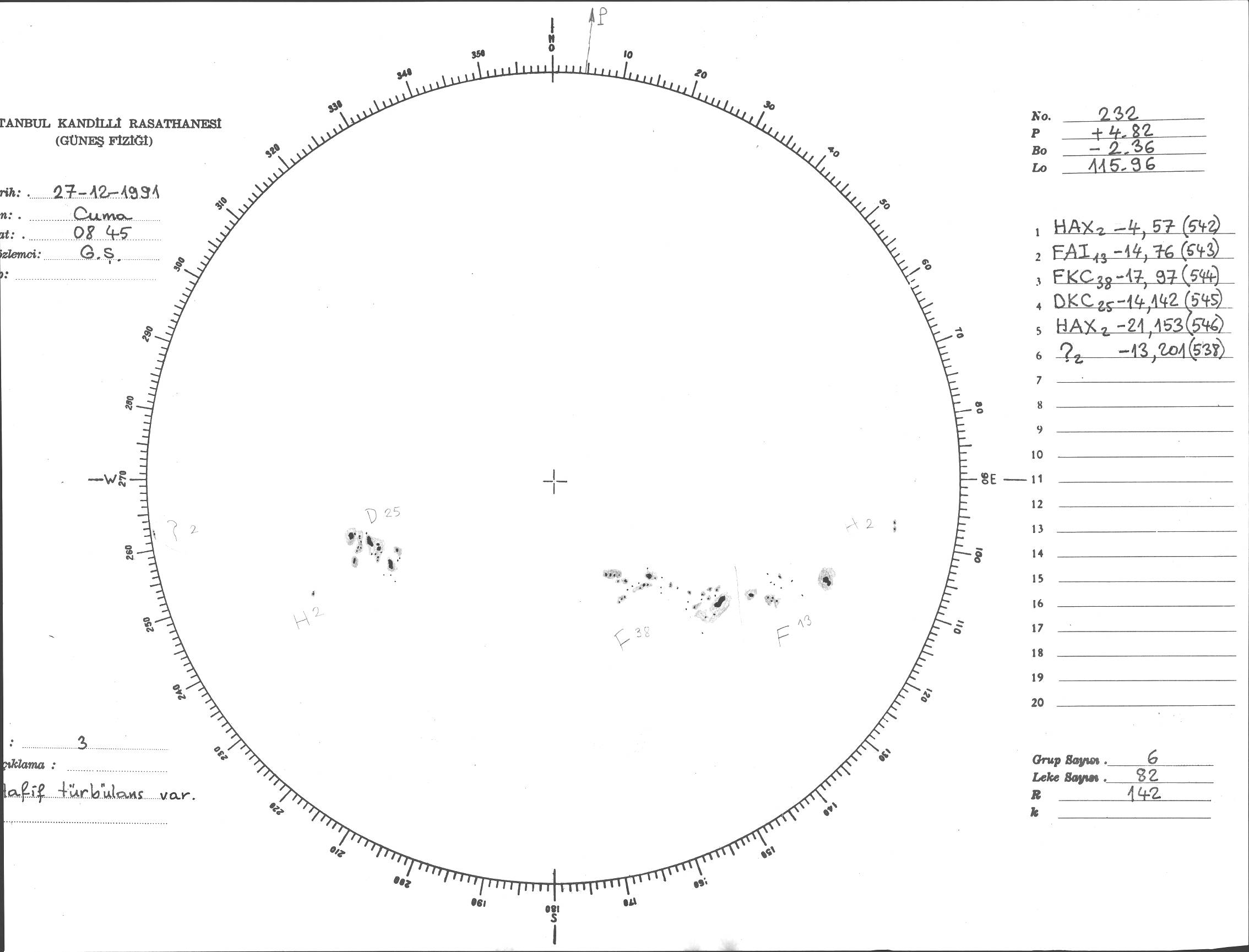 Güneş Lekesi Çizimi - 27.12.1991