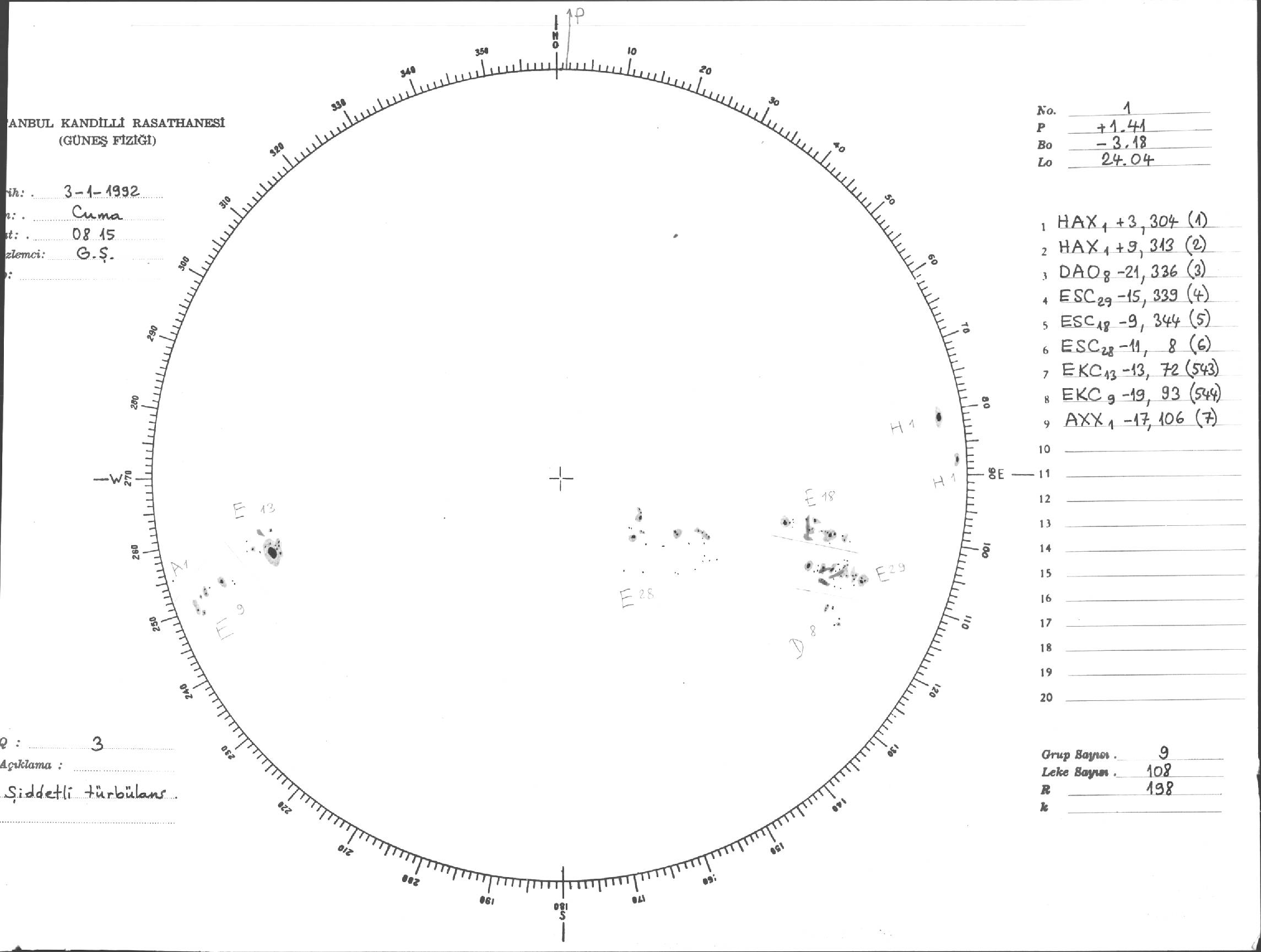 Güneş Lekesi Çizimi - 03.01.1992