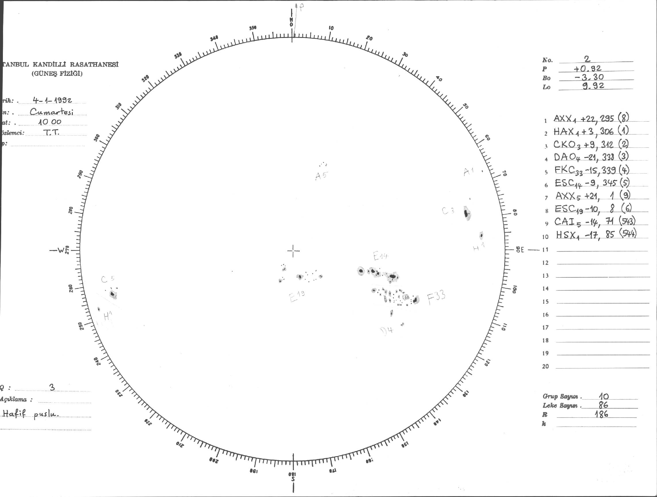 Güneş Lekesi Çizimi - 04.01.1992
