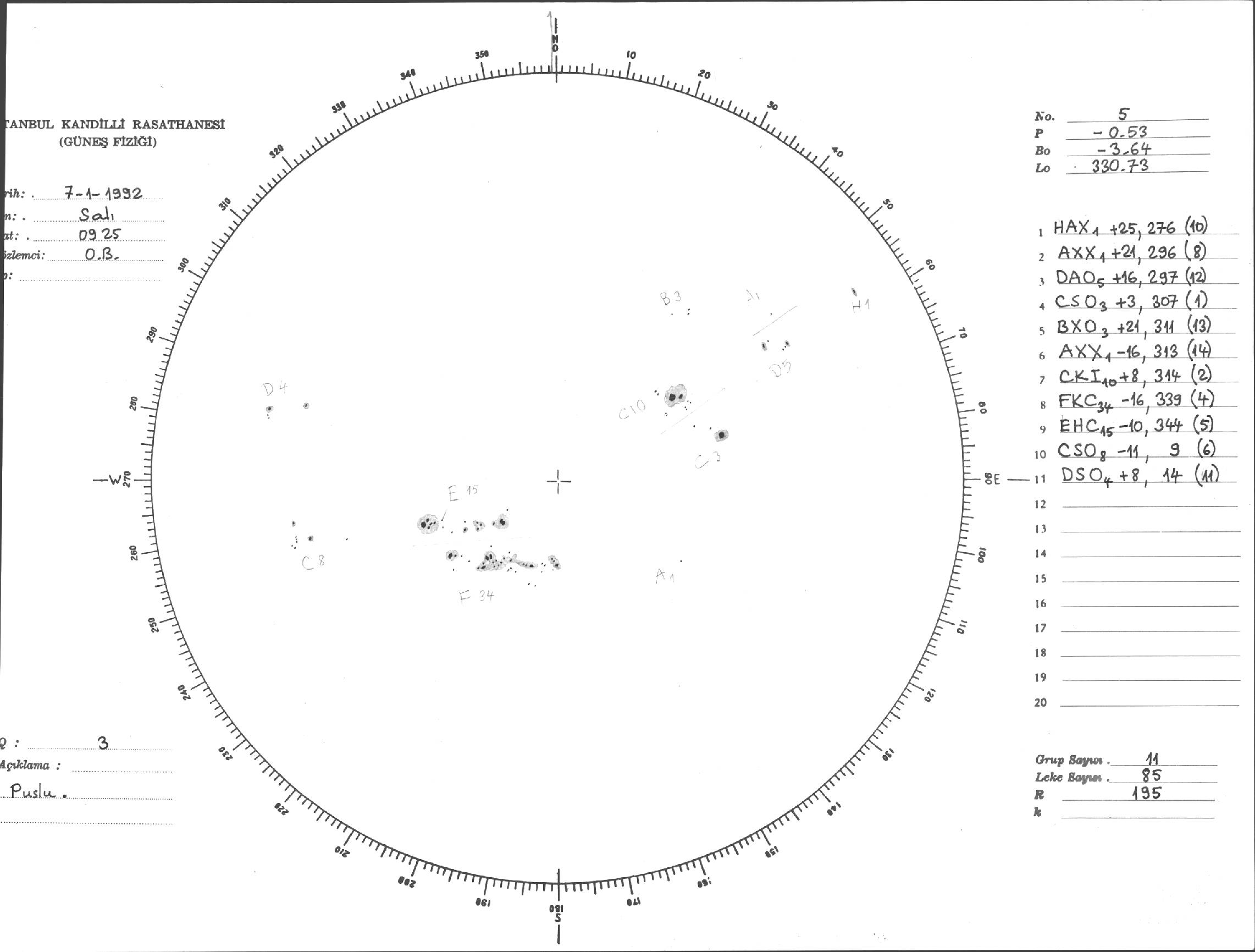 Güneş Lekesi Çizimi - 07.01.1992