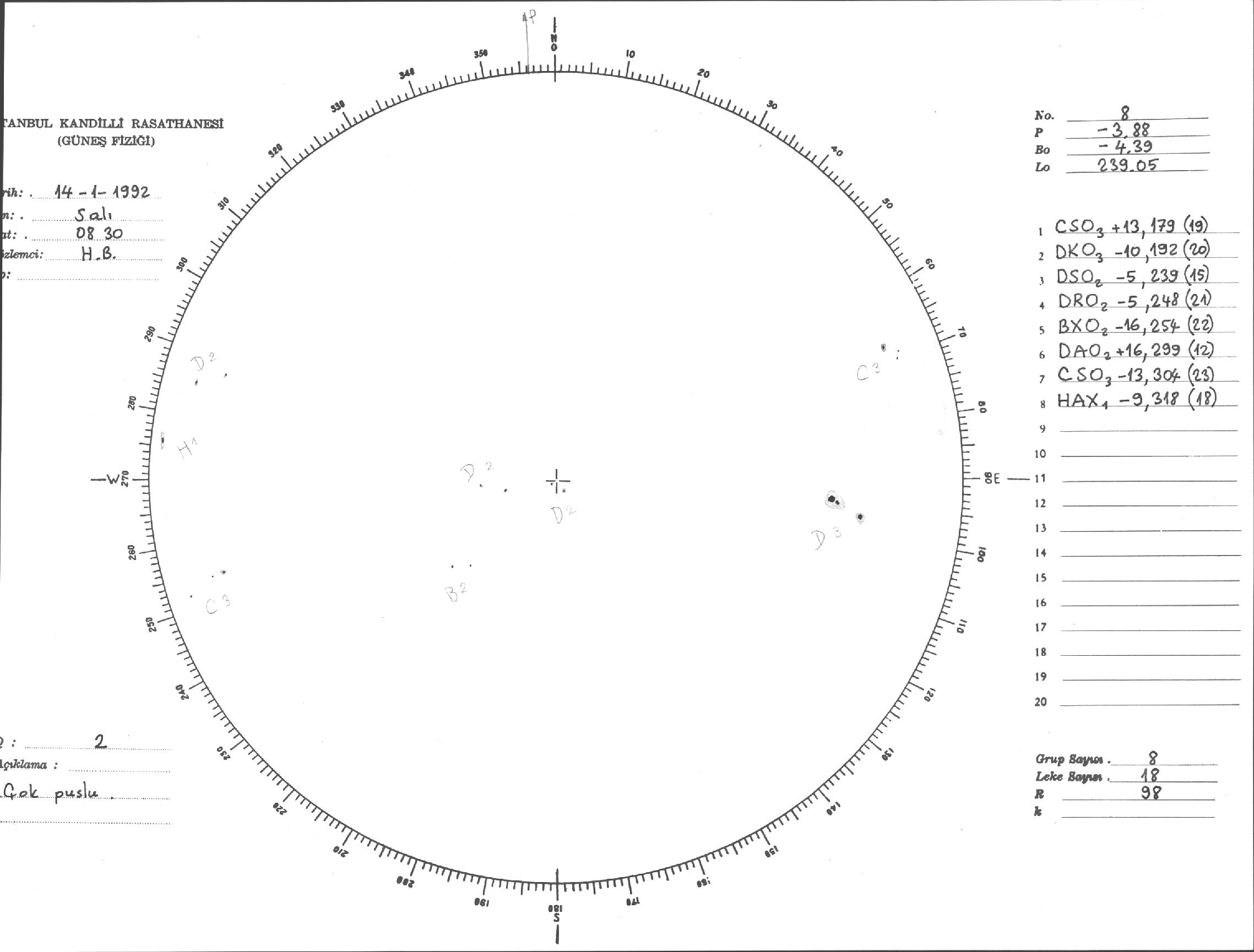 Güneş Lekesi Çizimi - 14.01.1992