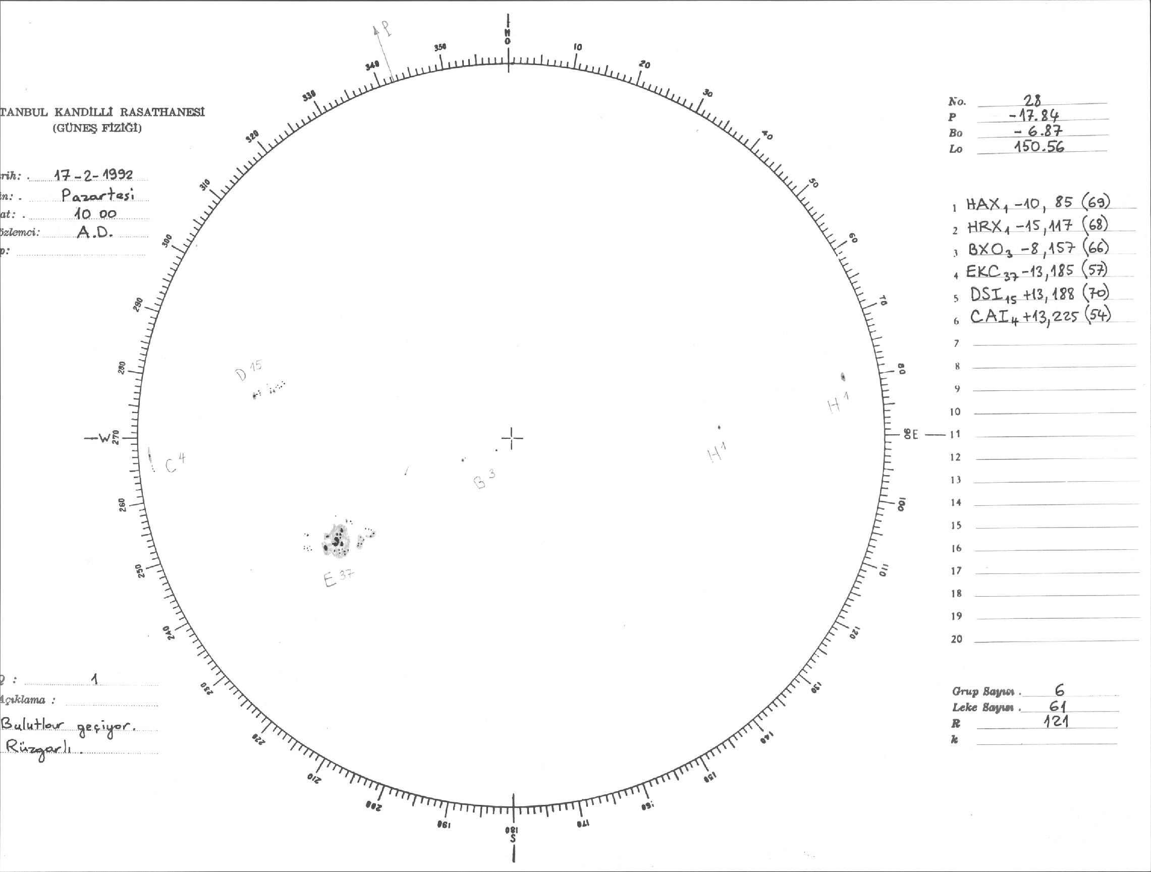 Güneş Lekesi Çizimi - 17.02.1992