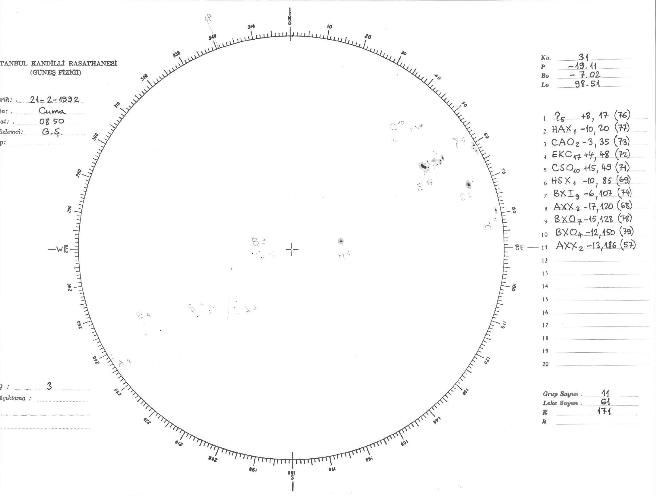 Güneş Lekesi Çizimi - 21.02.1992