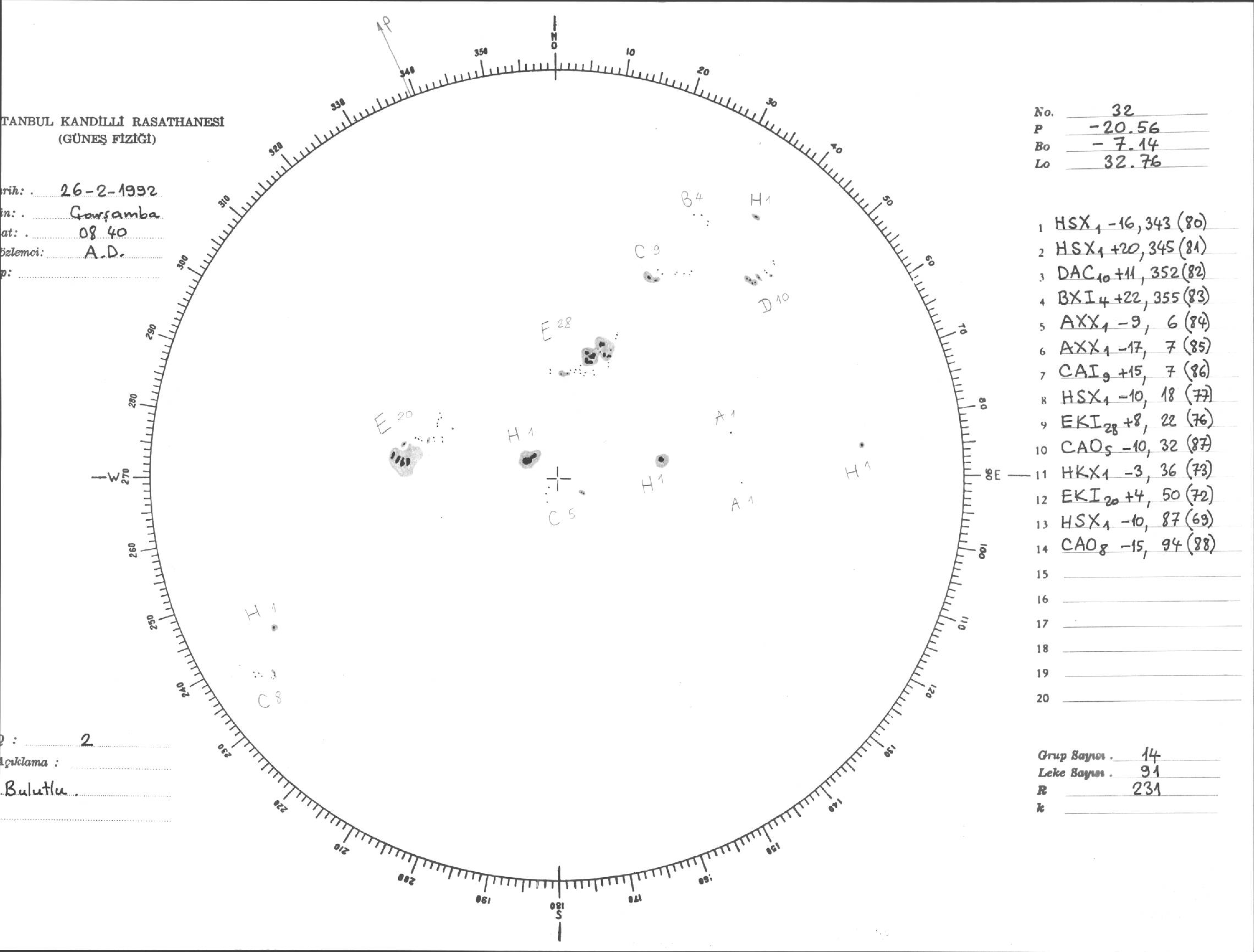 Güneş Lekesi Çizimi - 26.02.1992
