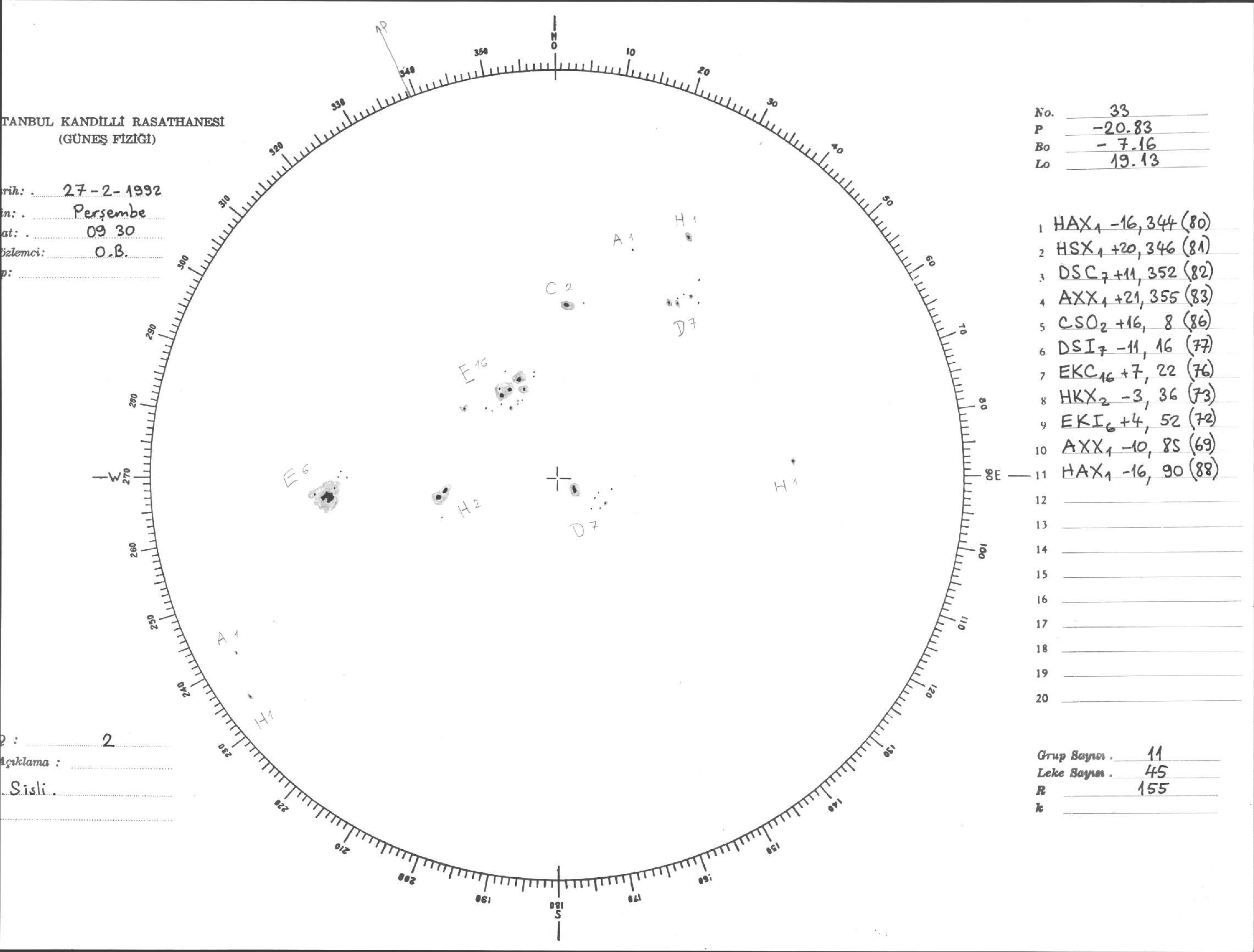Güneş Lekesi Çizimi - 27.02.1992