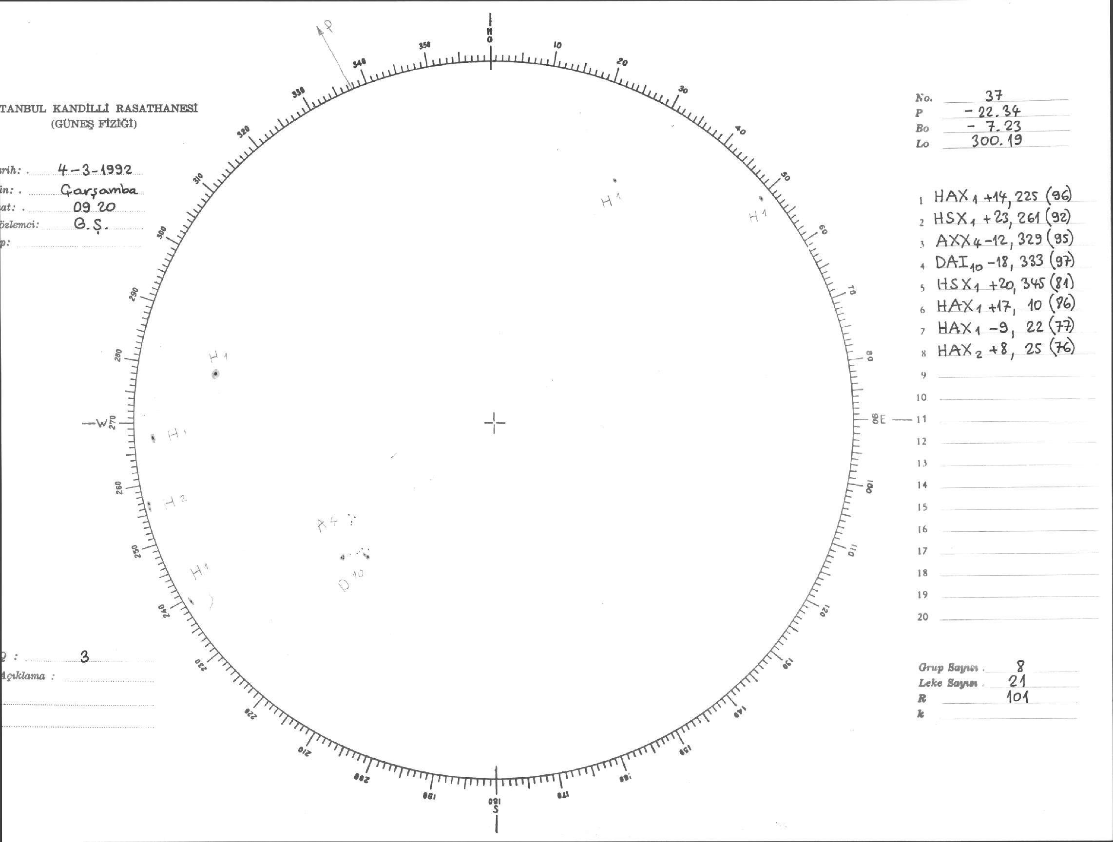 Güneş Lekesi Çizimi - 04.03.1992