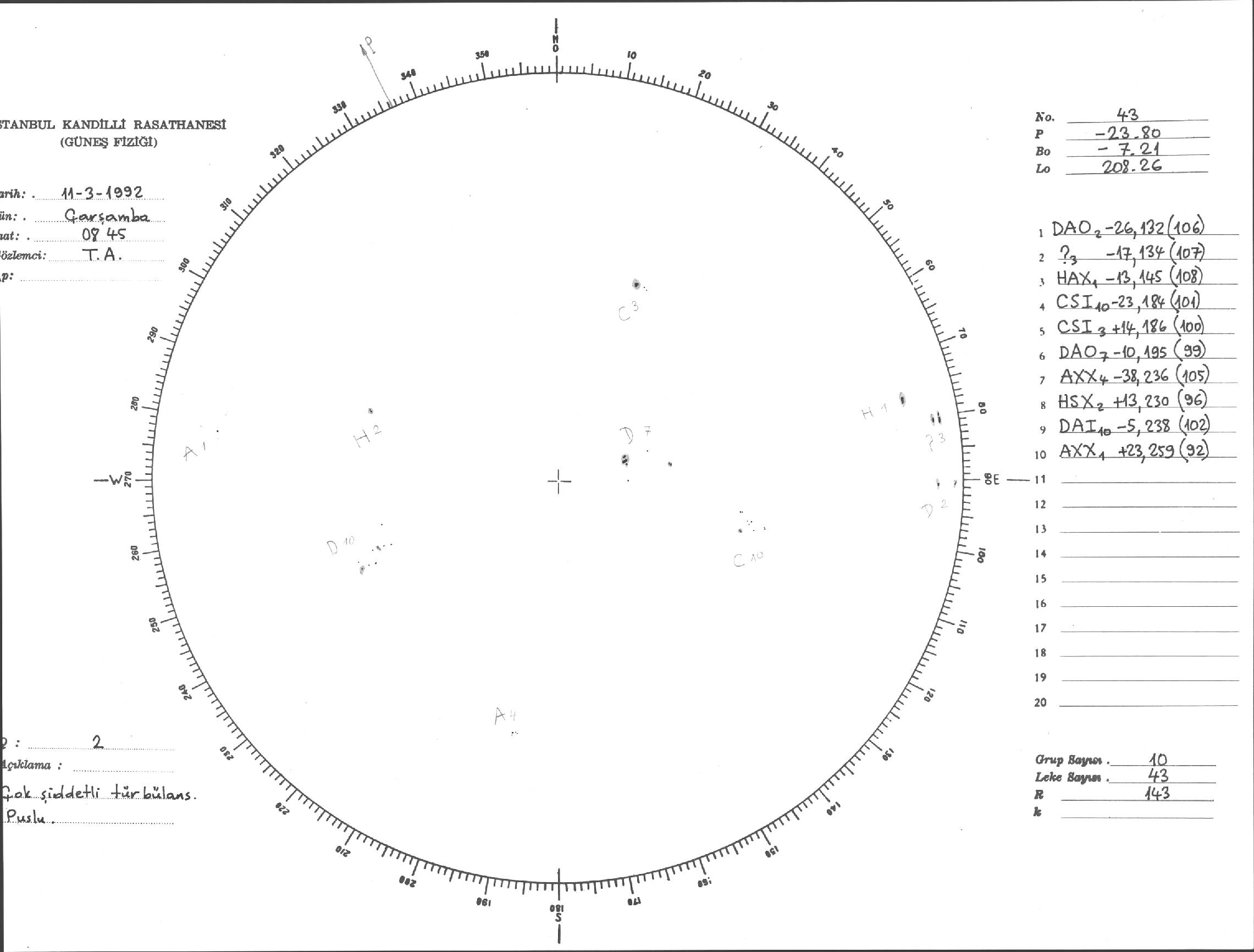Güneş Lekesi Çizimi - 11.03.1992