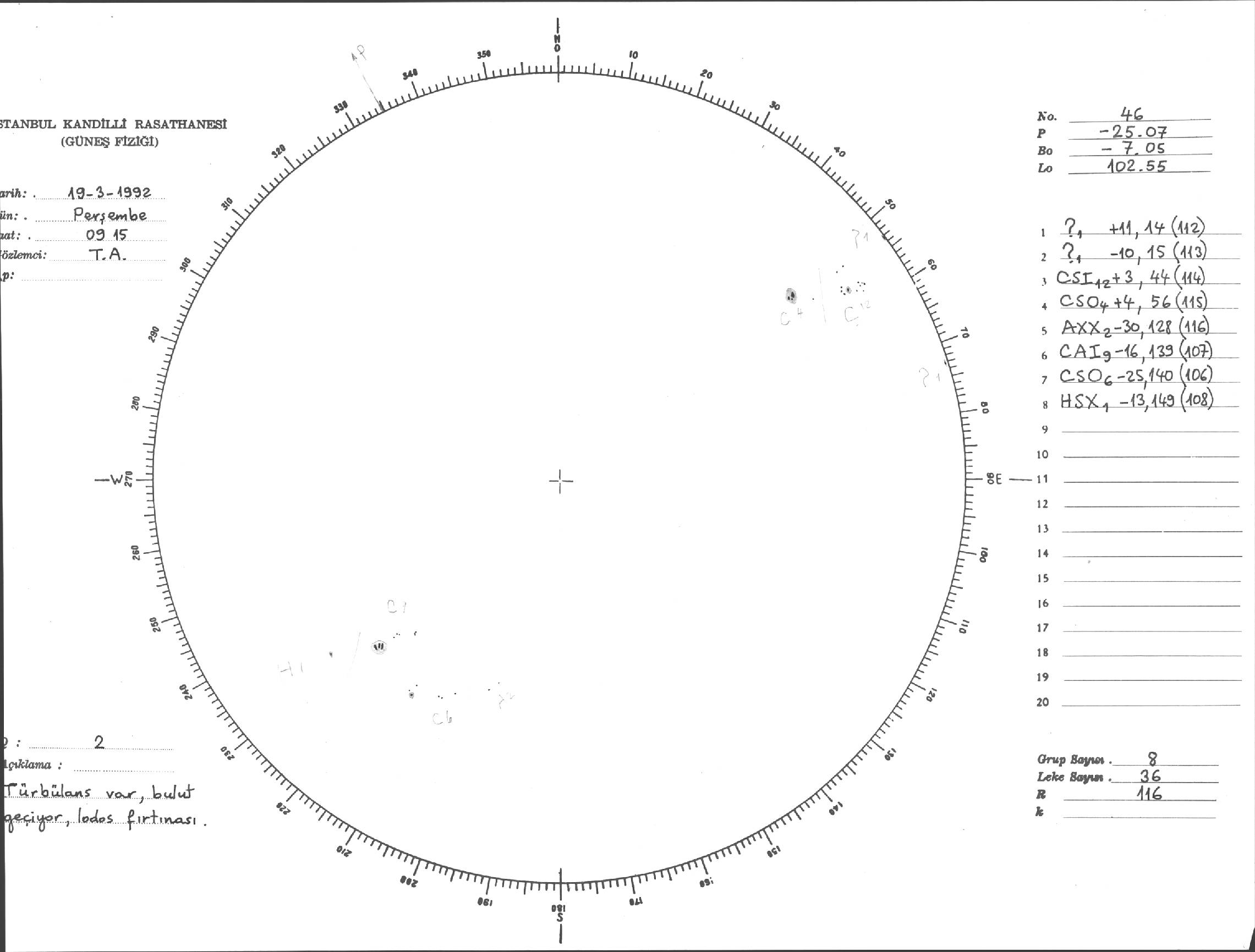Güneş Lekesi Çizimi - 19.03.1992