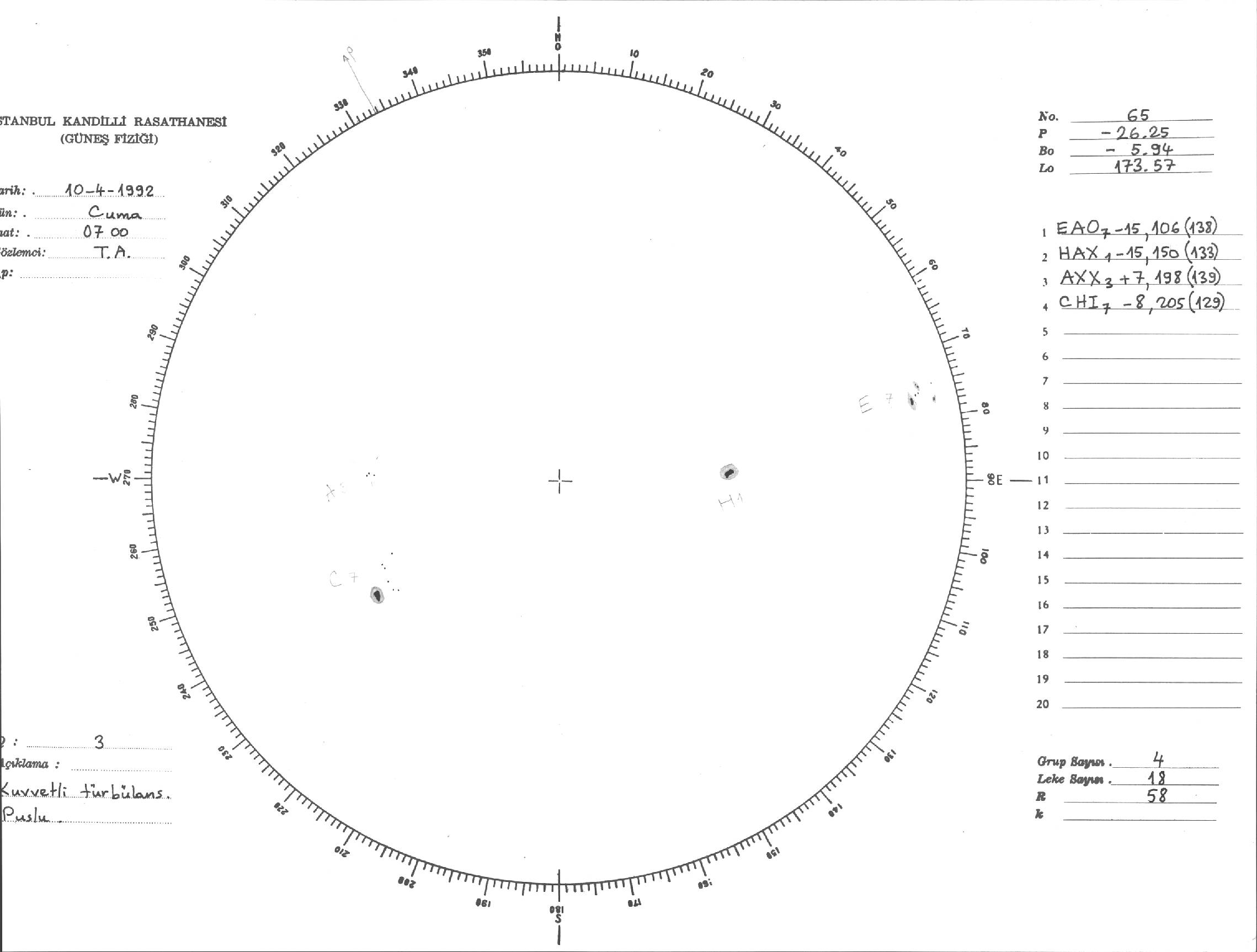Güneş Lekesi Çizimi - 10.04.1992