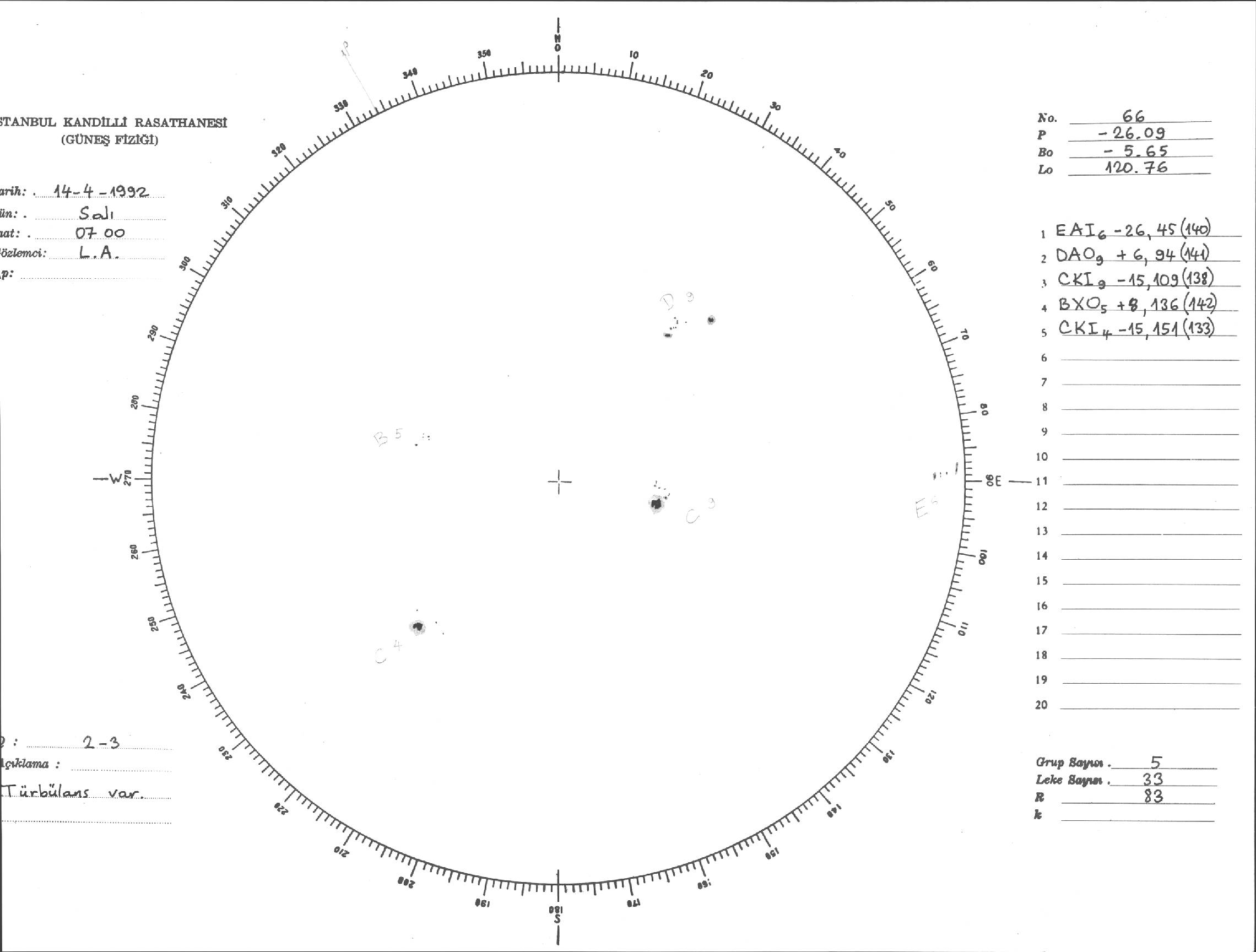 Güneş Lekesi Çizimi - 14.04.1992