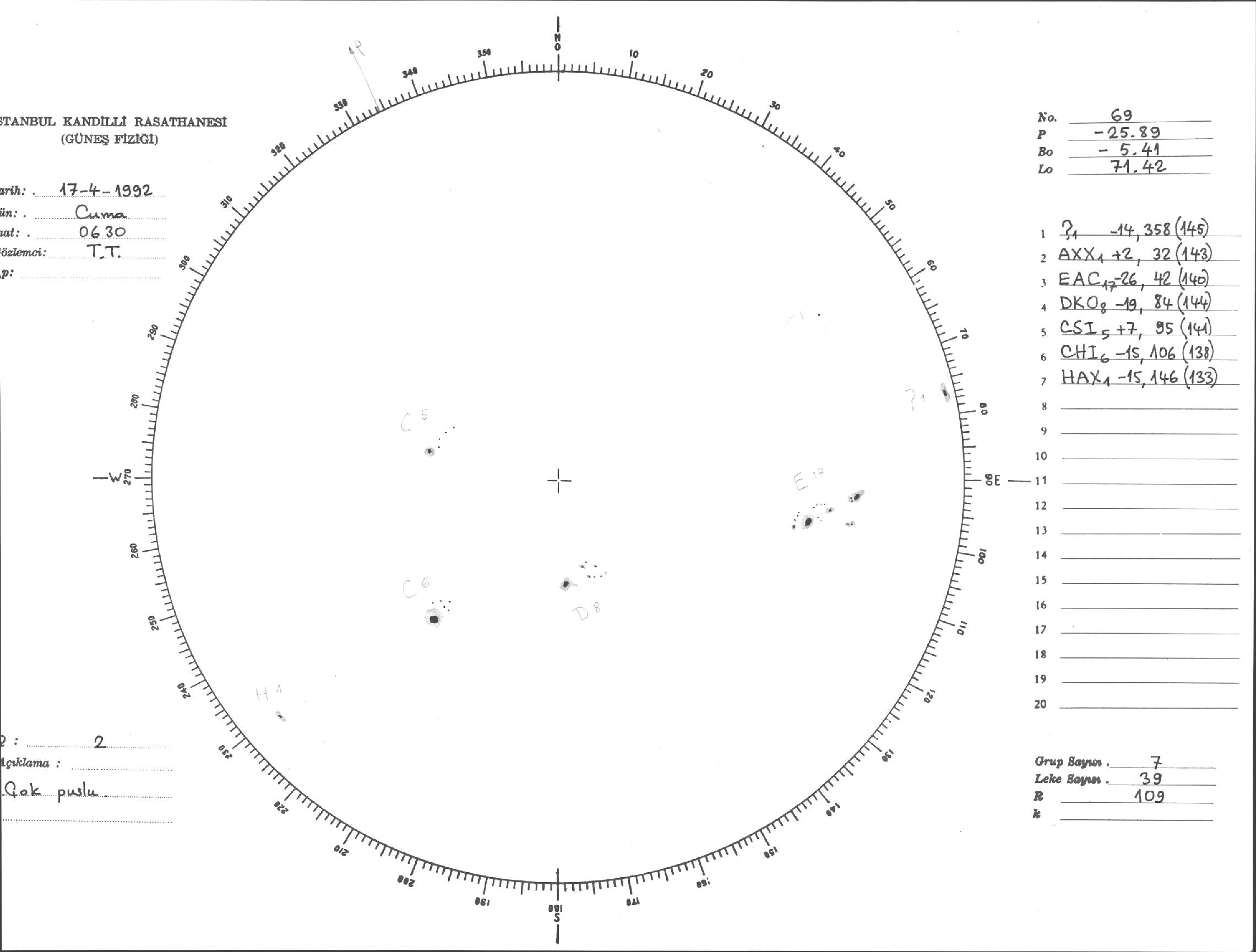 Güneş Lekesi Çizimi - 17.04.1992