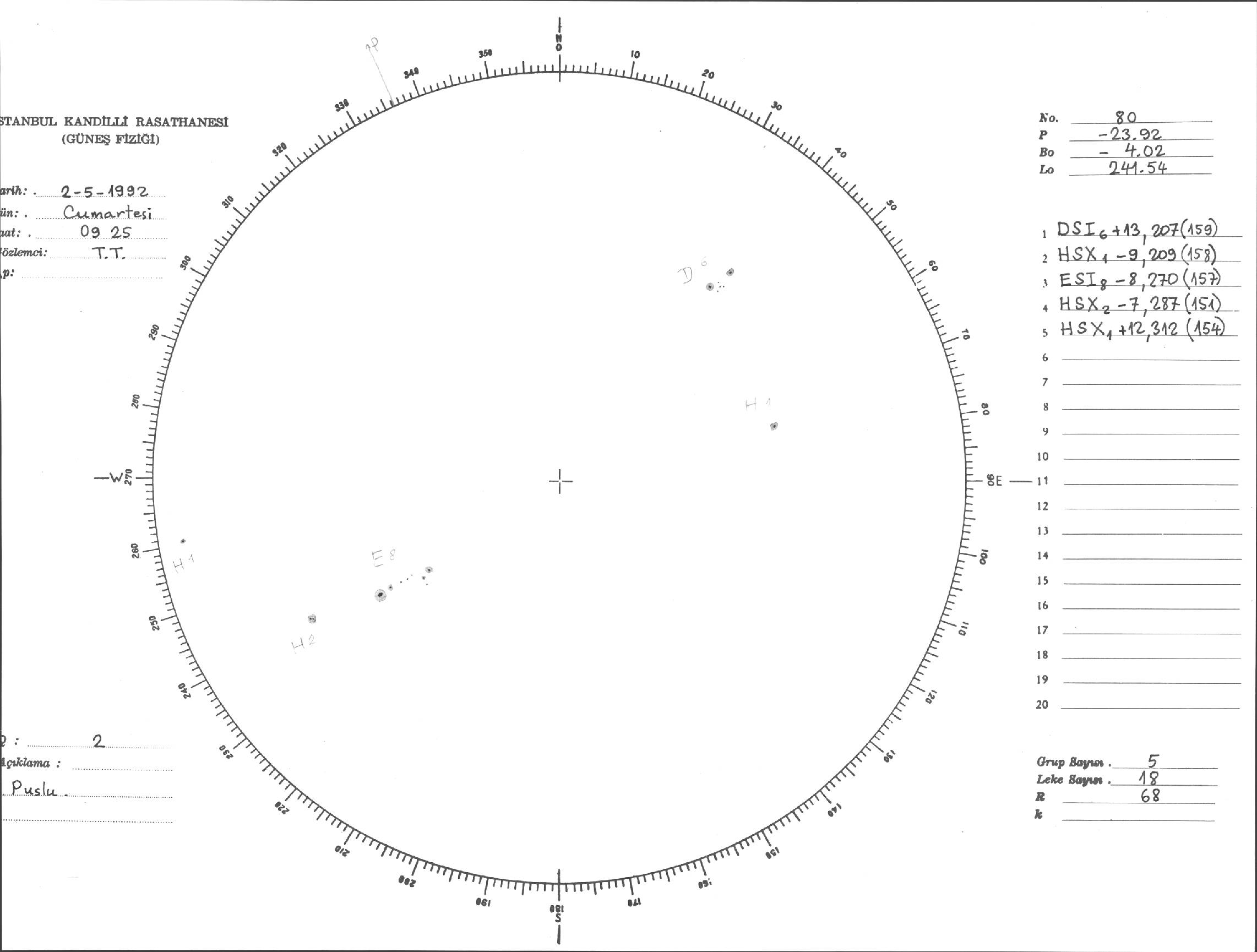 Güneş Lekesi Çizimi - 02.05.1992