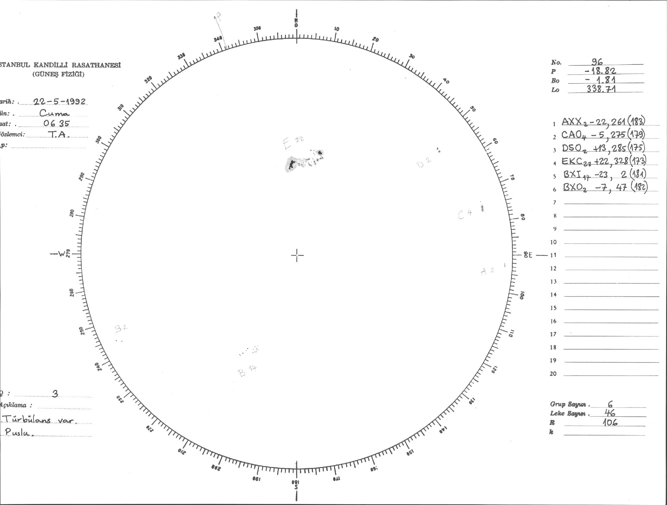 Güneş Lekesi Çizimi - 22.05.1992