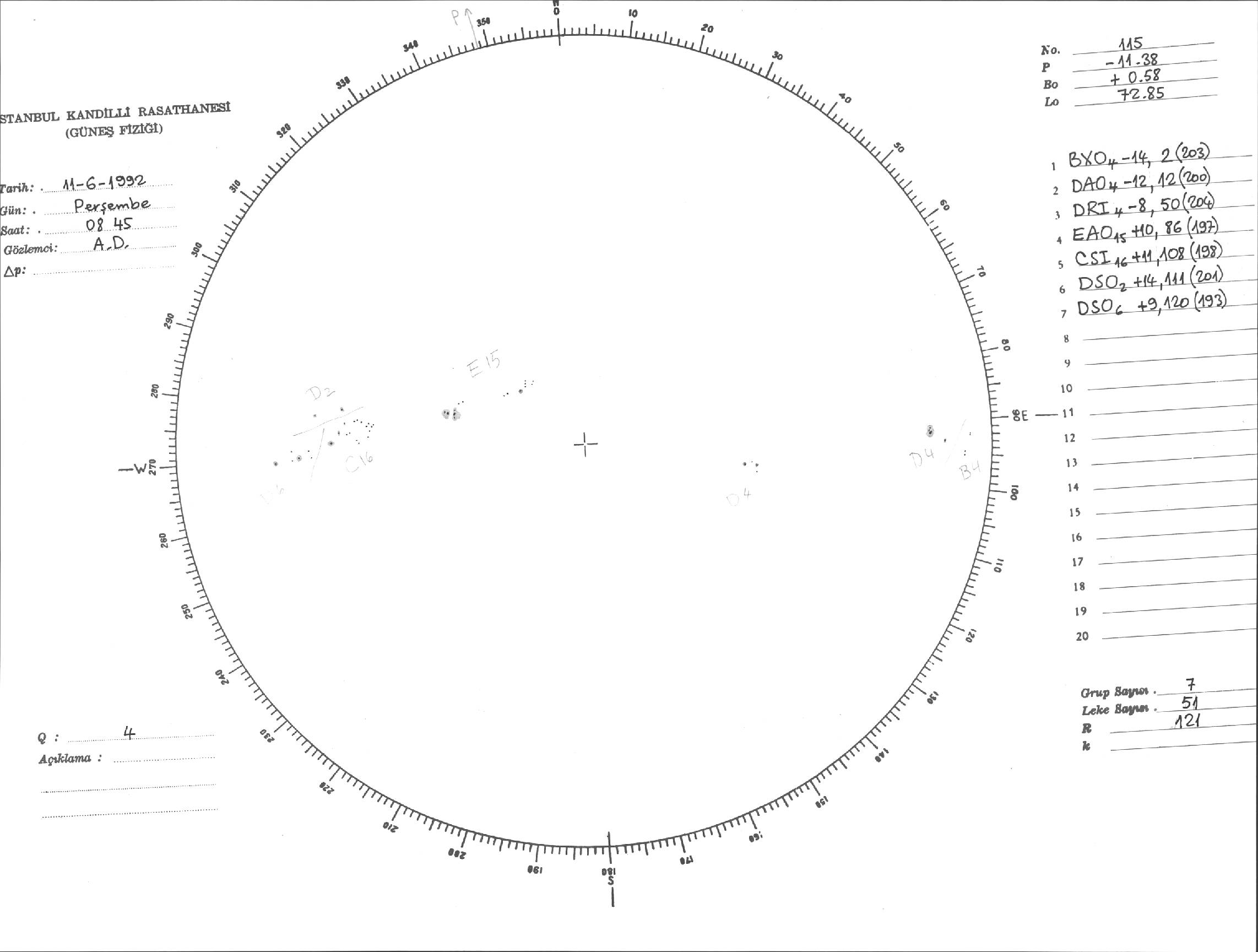 Güneş Lekesi Çizimi - 11.06.1992