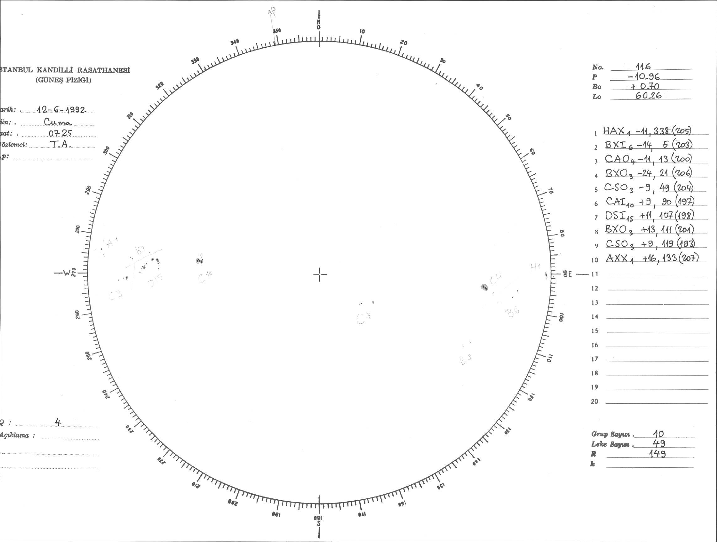 Güneş Lekesi Çizimi - 12.06.1992