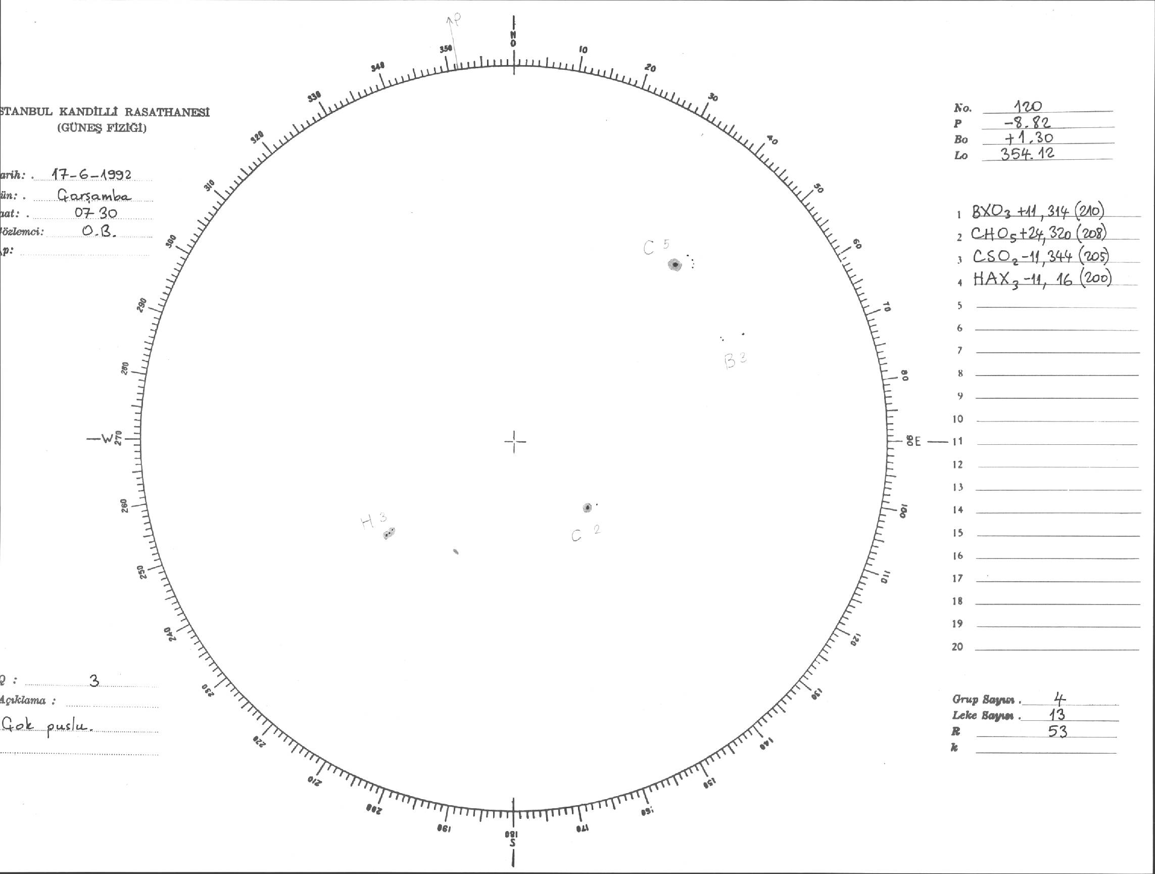 Güneş Lekesi Çizimi - 17.06.1992