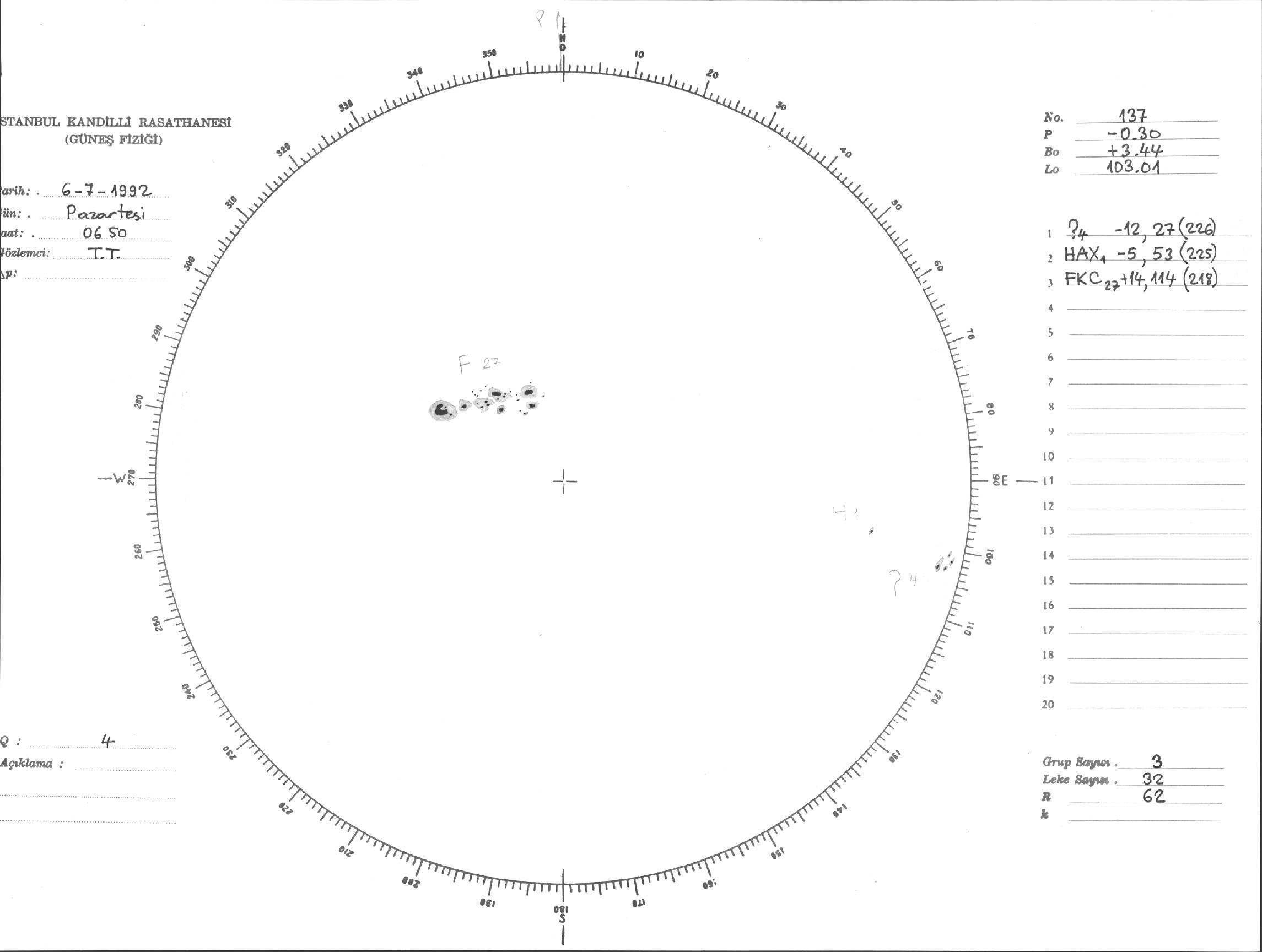 Güneş Lekesi Çizimi - 06.07.1992