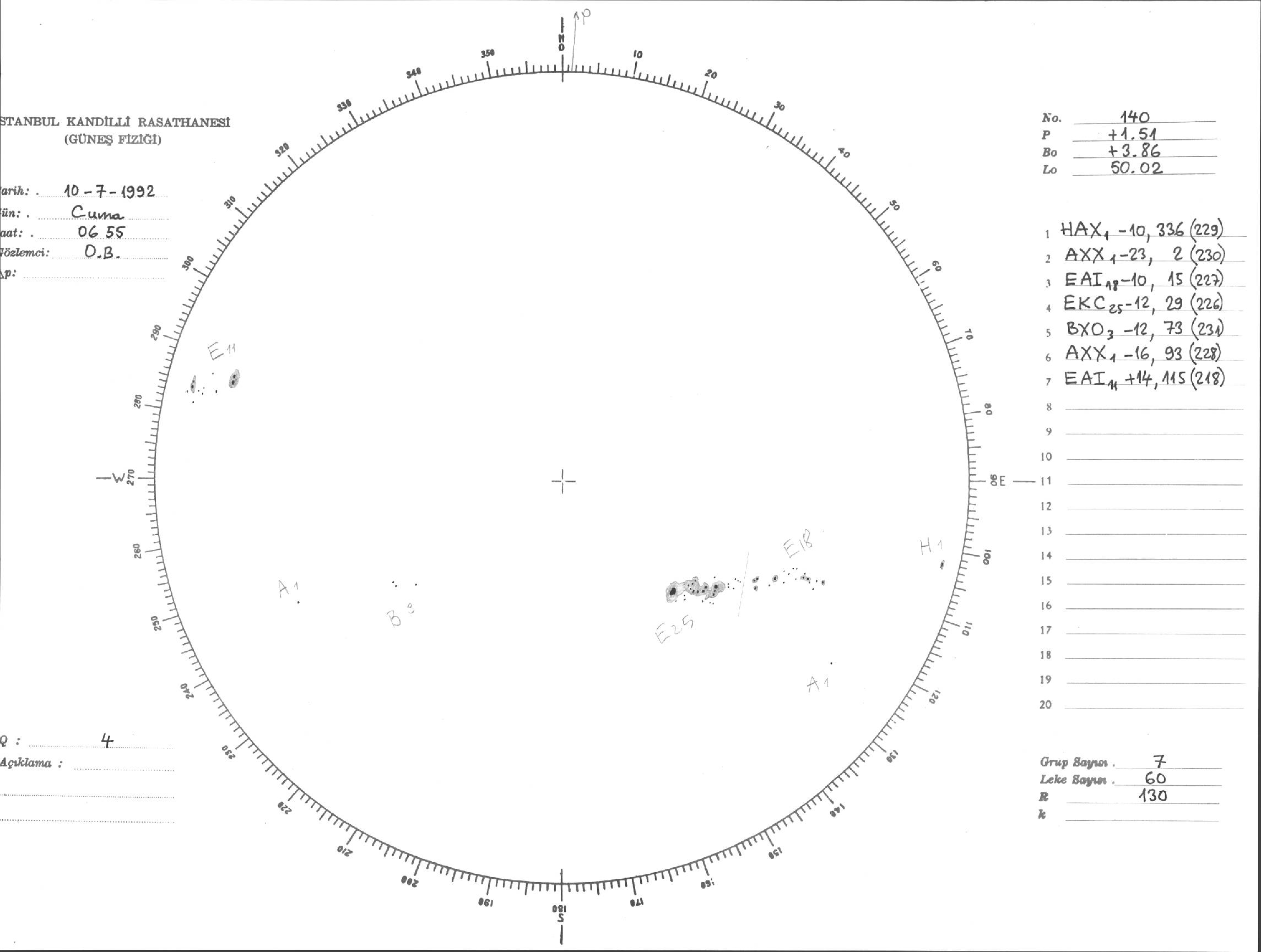 Güneş Lekesi Çizimi - 10.07.1992