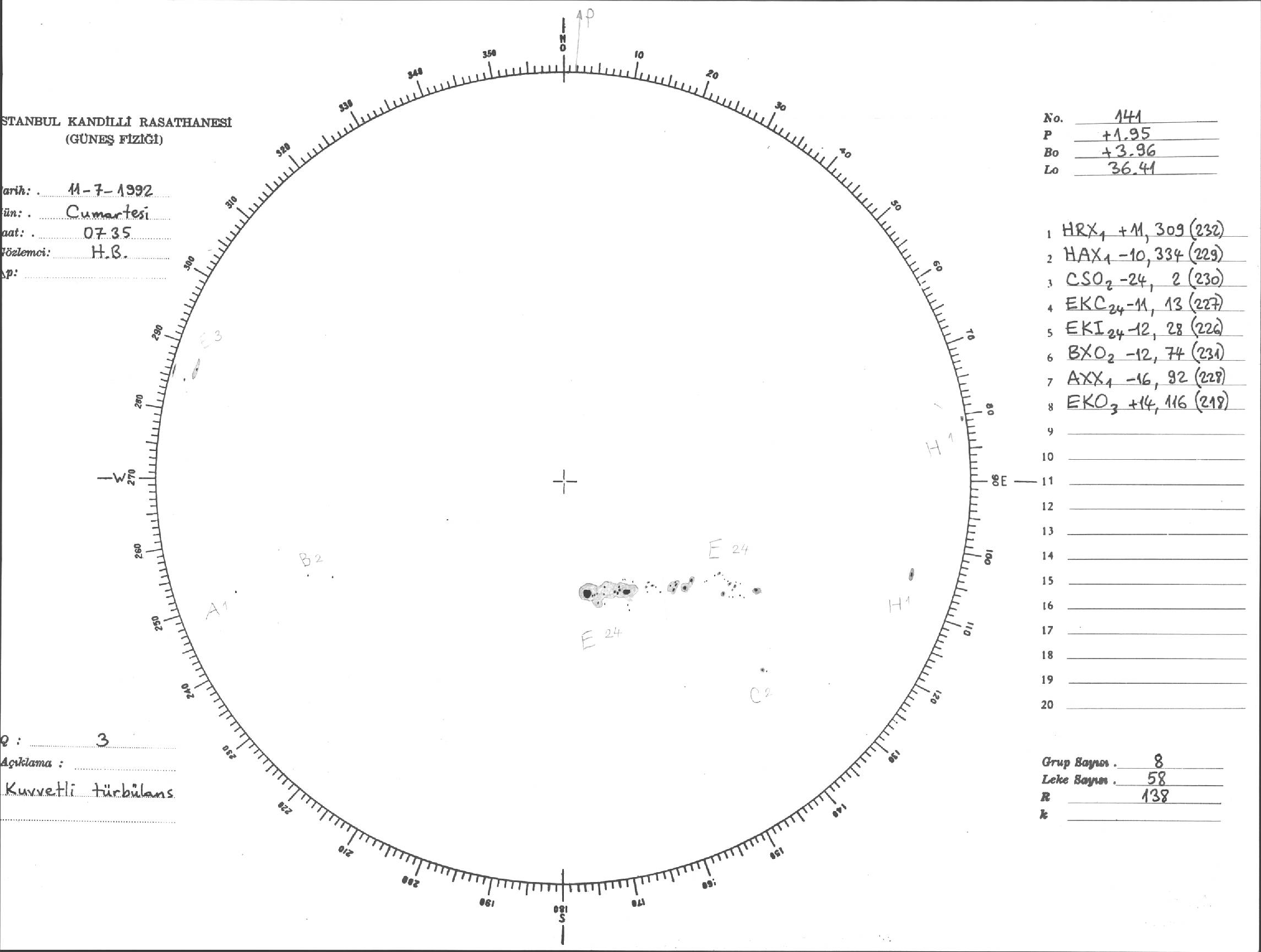 Güneş Lekesi Çizimi - 11.07.1992