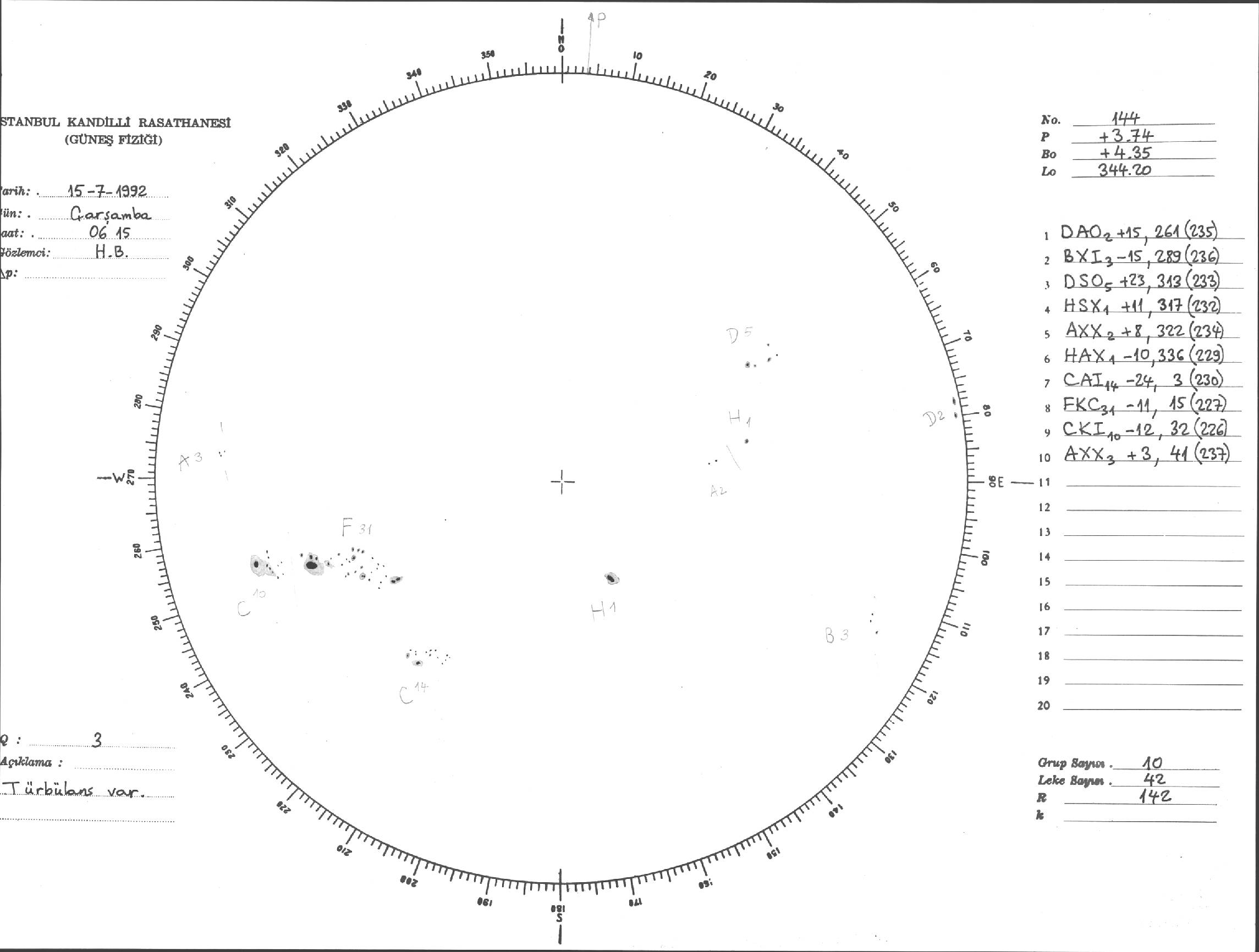 Güneş Lekesi Çizimi - 15.07.1992