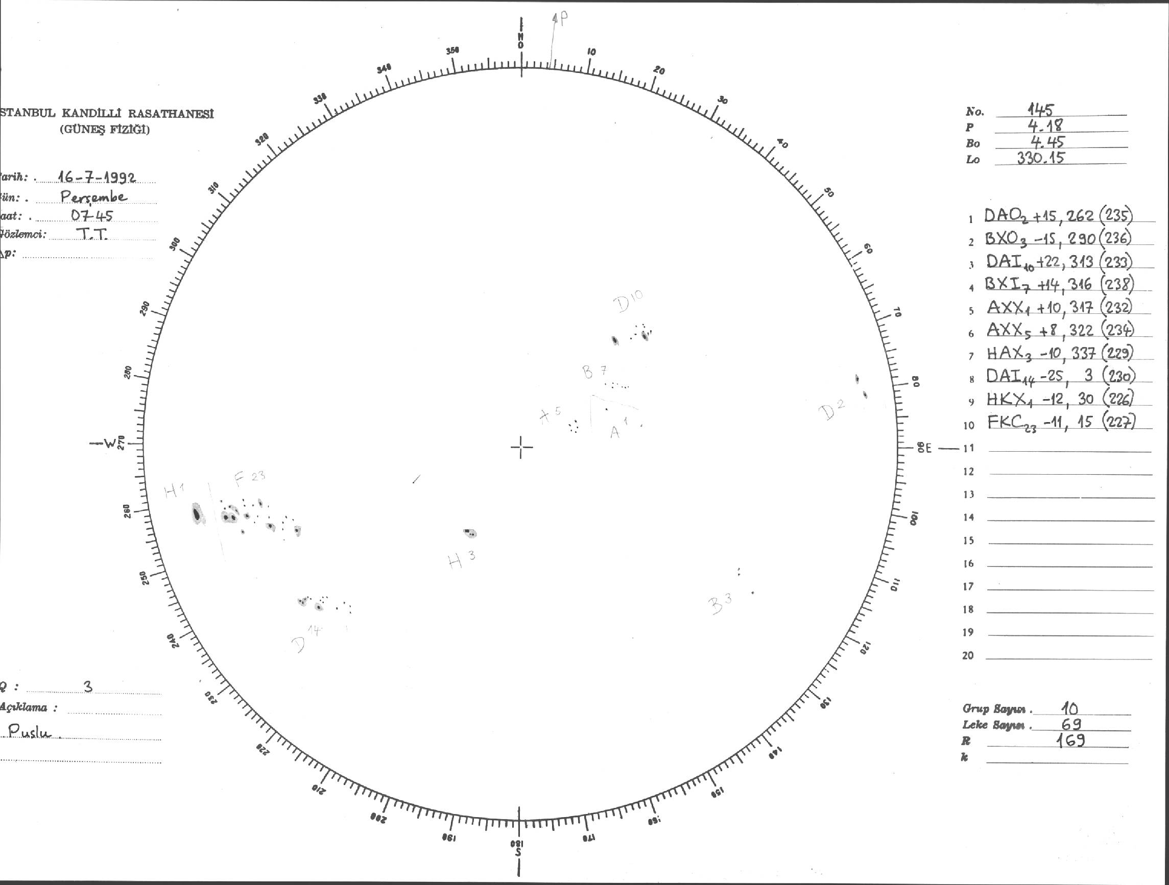 Güneş Lekesi Çizimi - 16.07.1992
