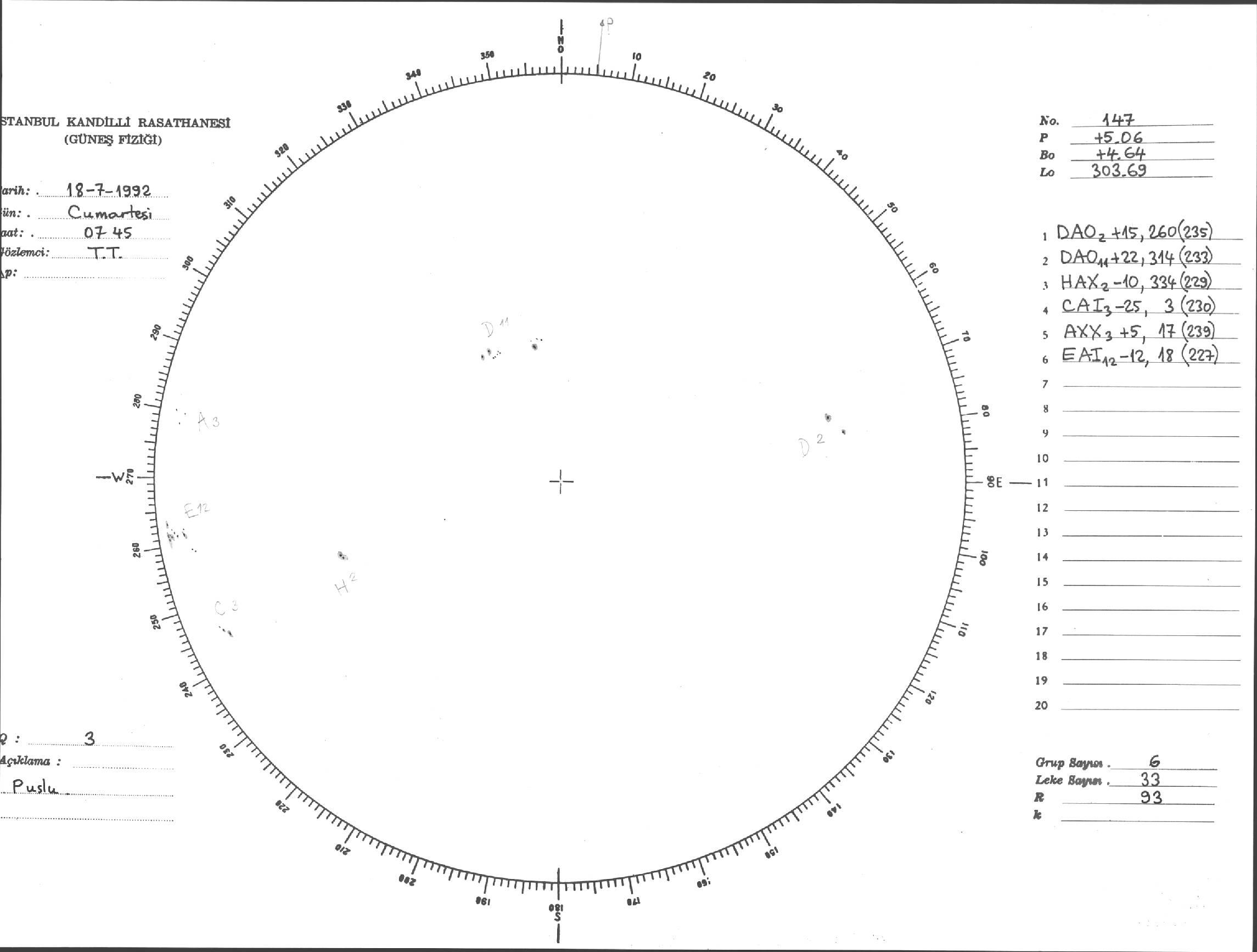 Güneş Lekesi Çizimi - 18.07.1992