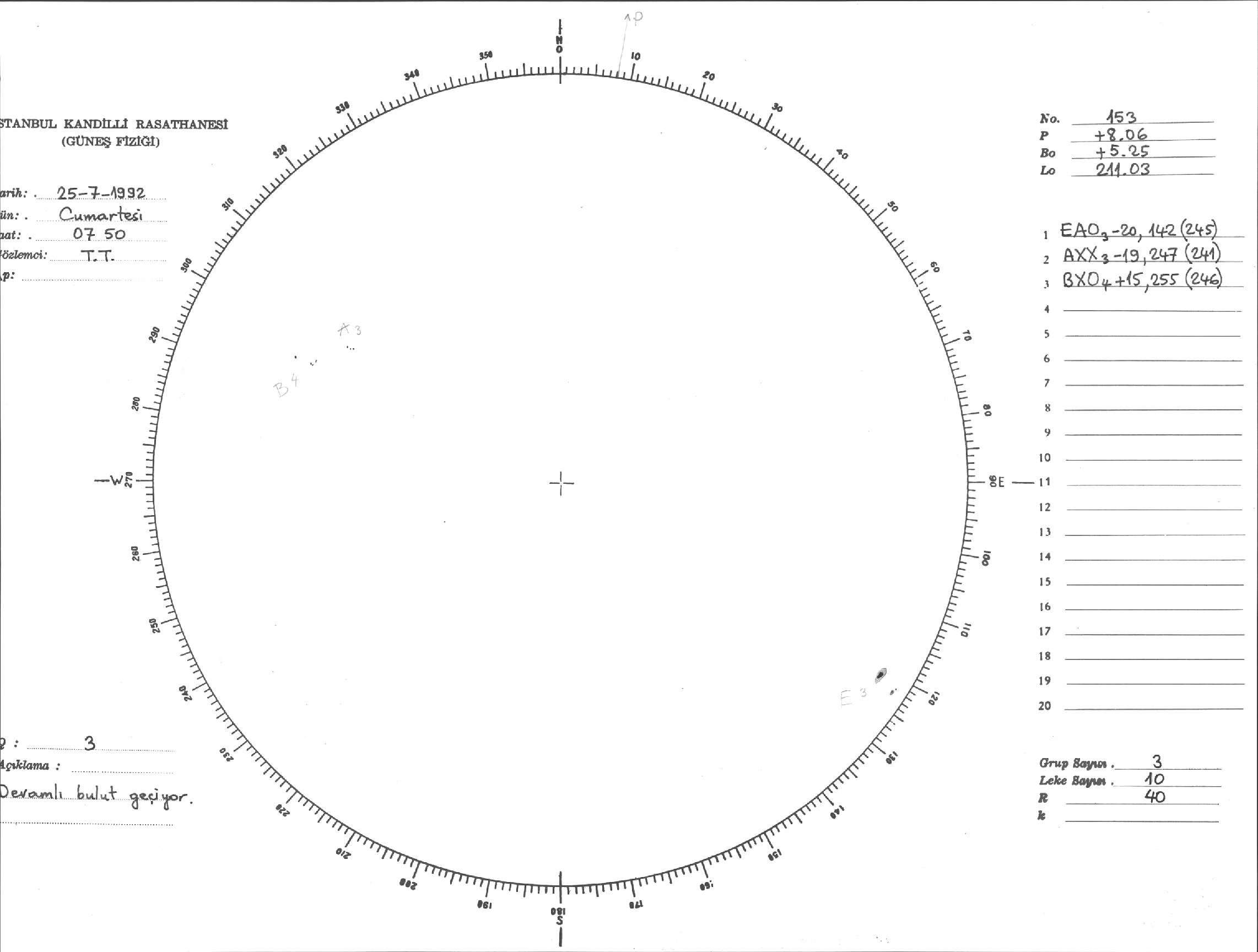 Güneş Lekesi Çizimi - 25.07.1992