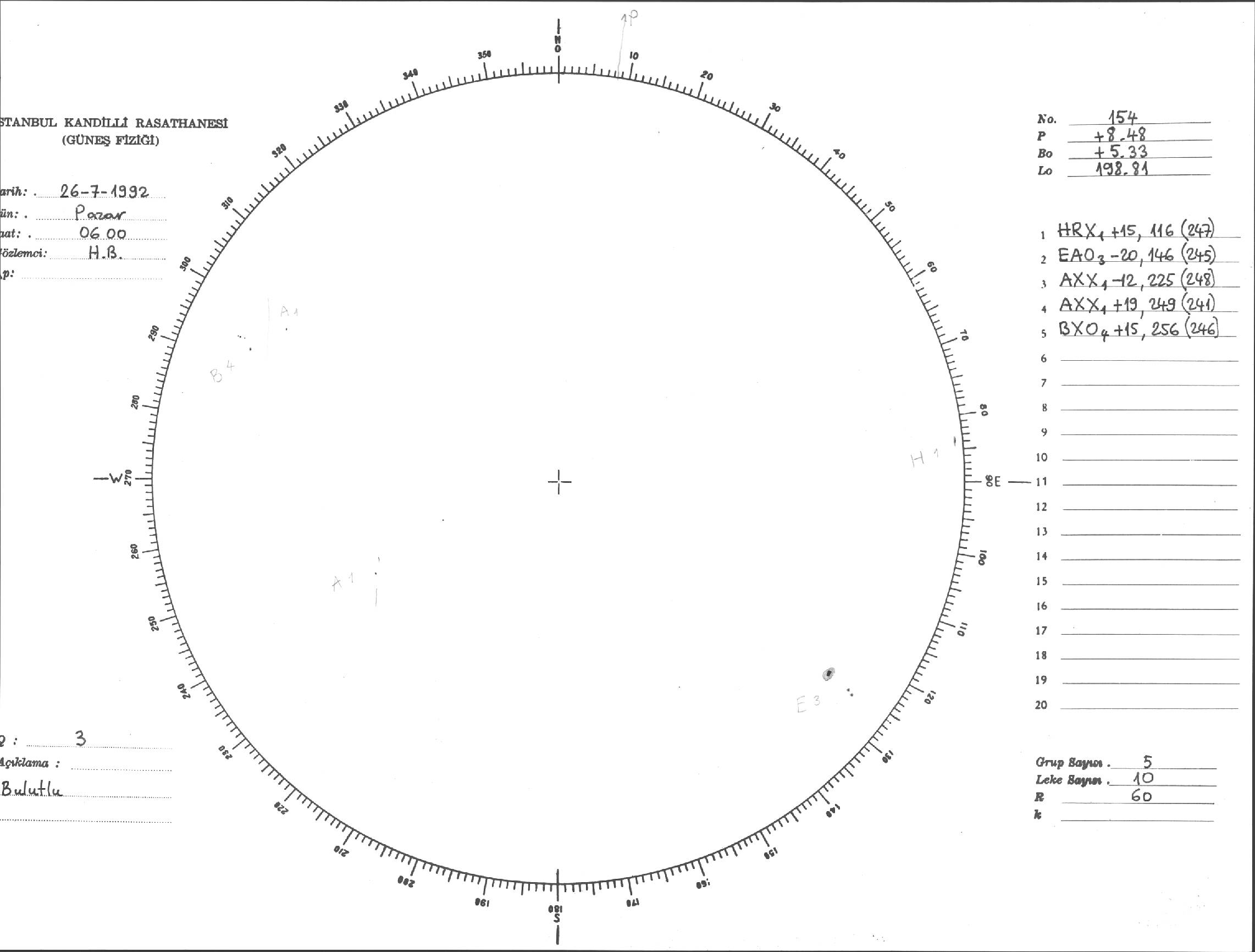 Güneş Lekesi Çizimi - 26.07.1992