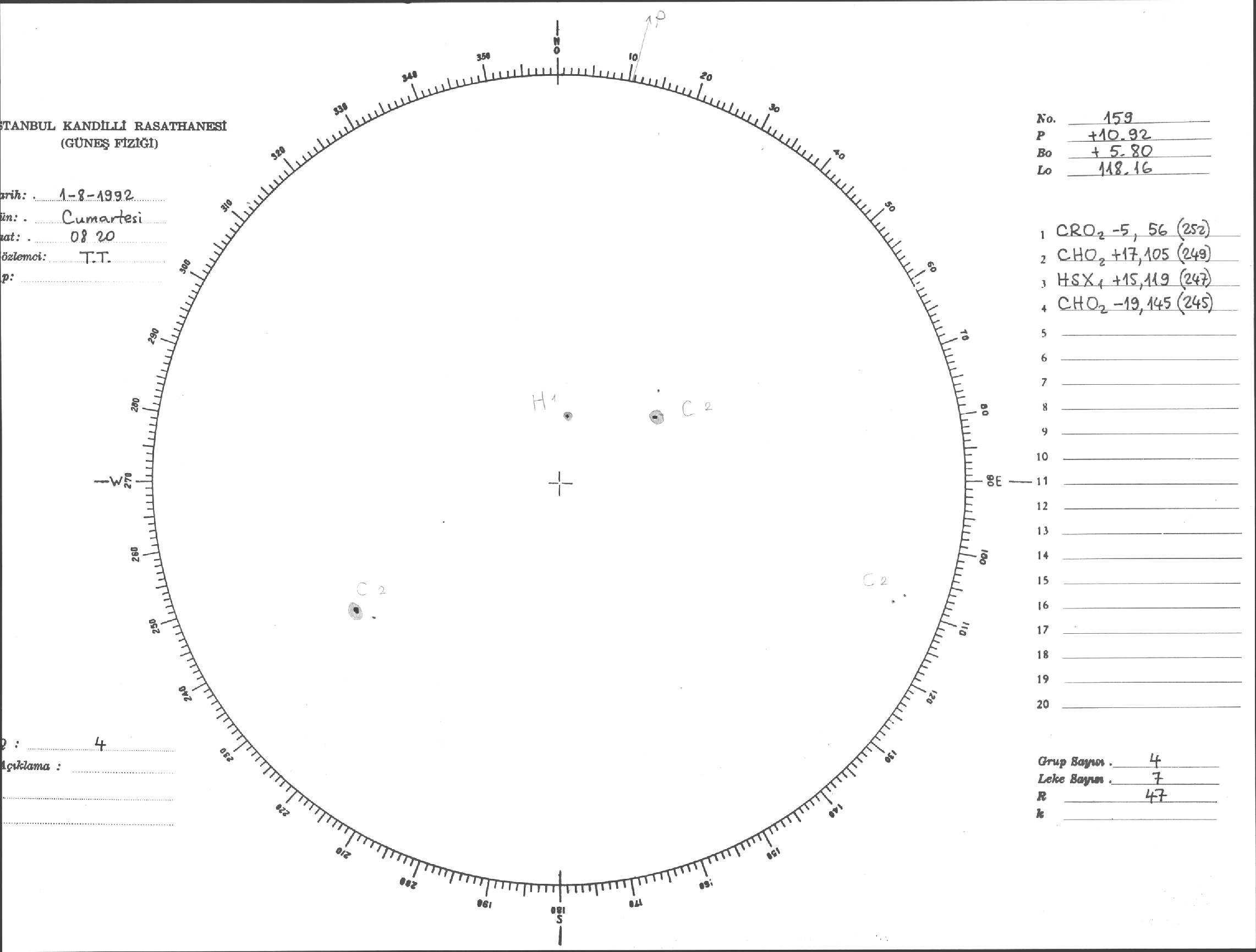 Güneş Lekesi Çizimi - 01.08.1992