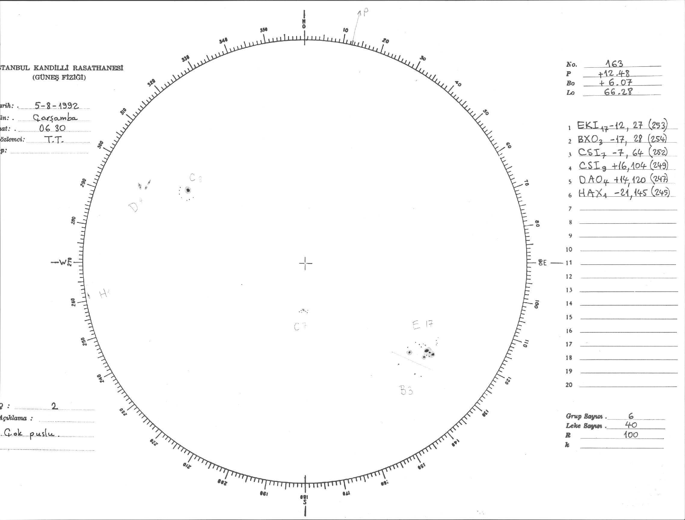 Güneş Lekesi Çizimi - 05.08.1992