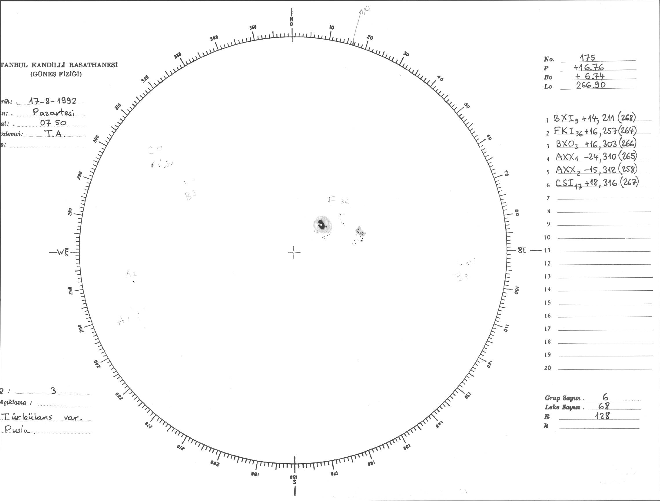 Güneş Lekesi Çizimi - 17.08.1992