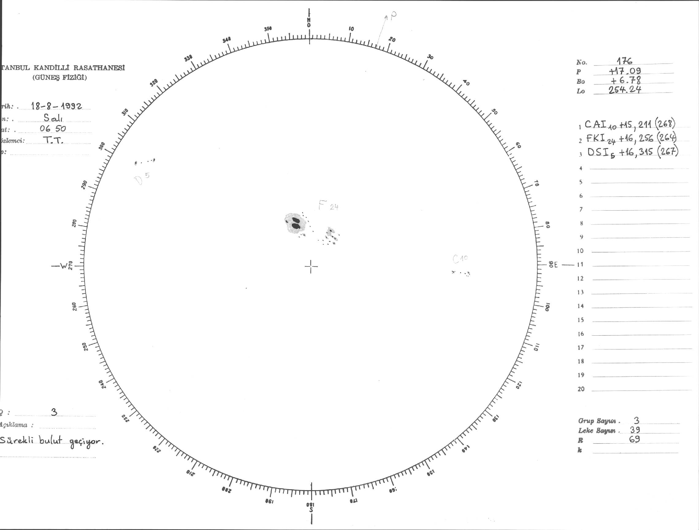 Güneş Lekesi Çizimi - 18.08.1992