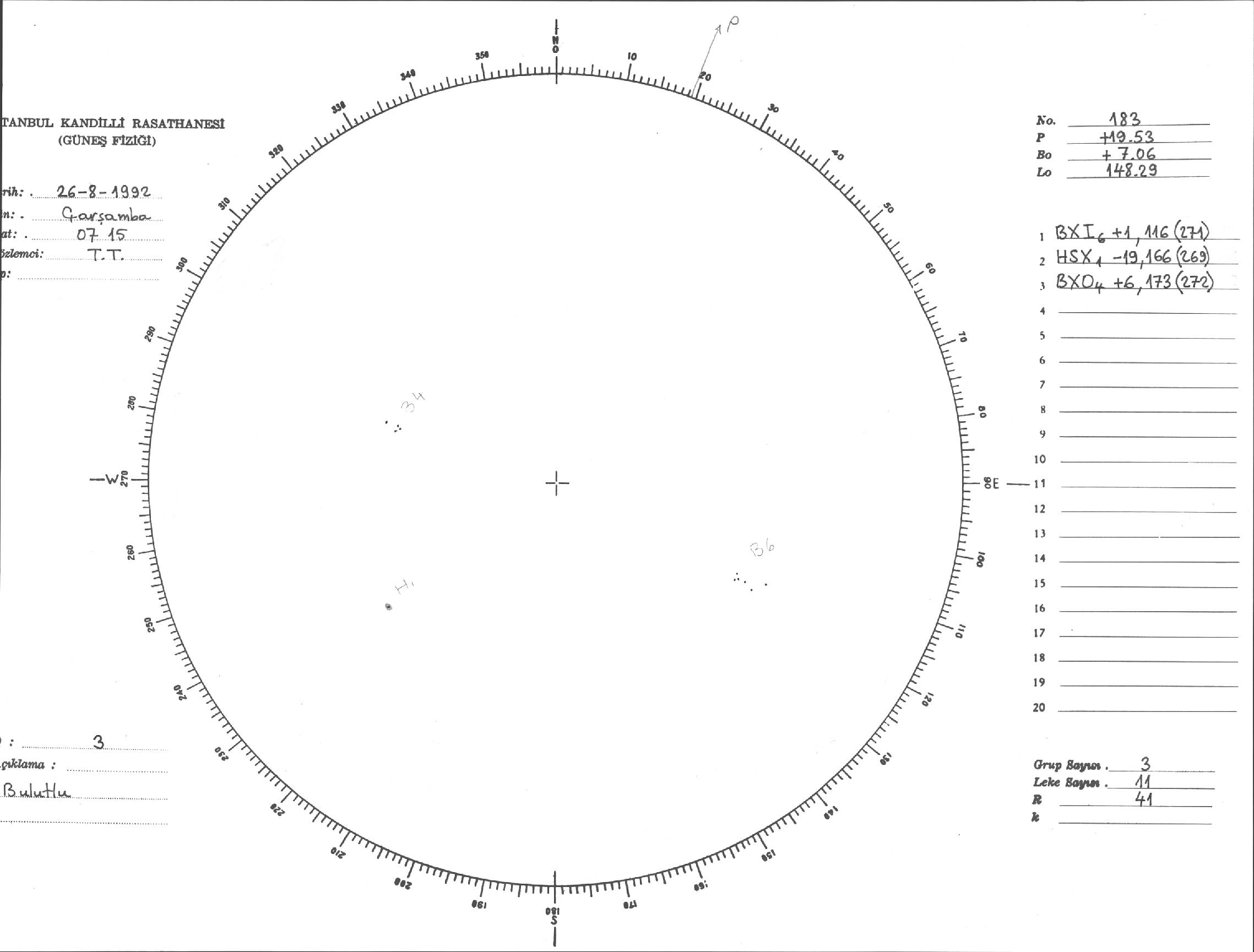 Güneş Lekesi Çizimi - 26.08.1992