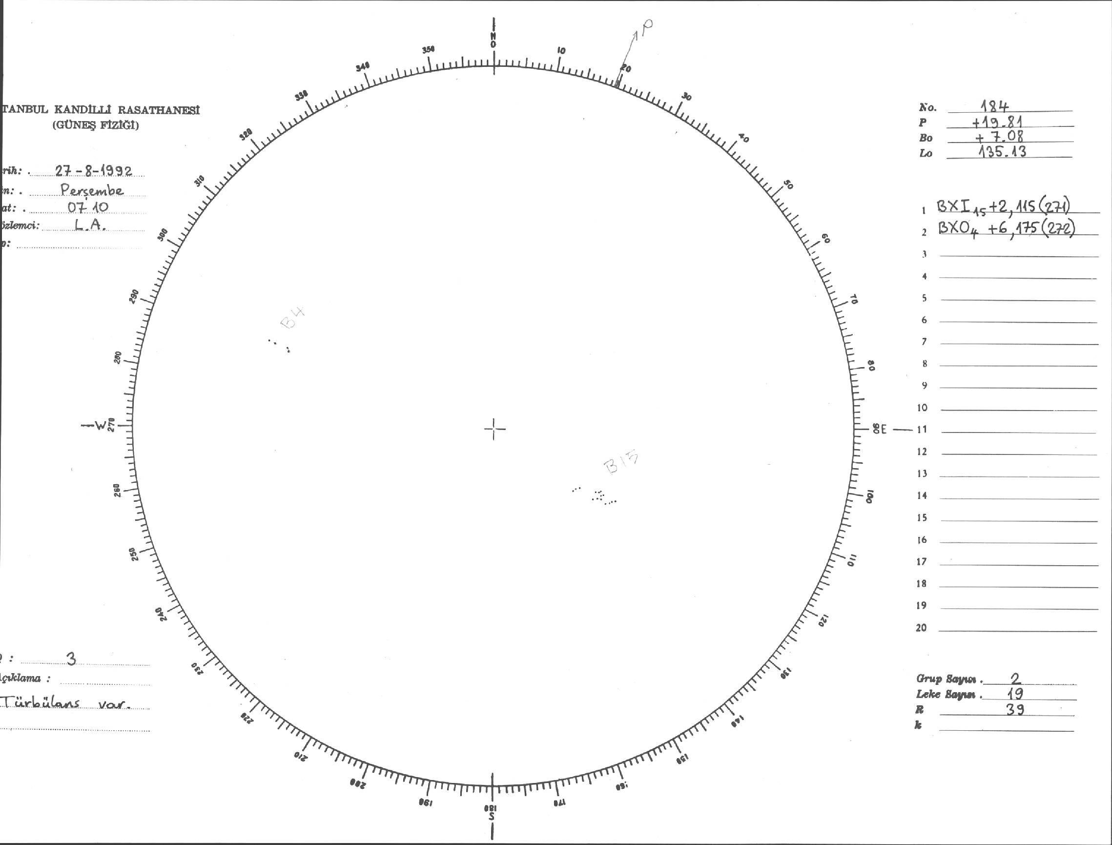 Güneş Lekesi Çizimi - 27.08.1992