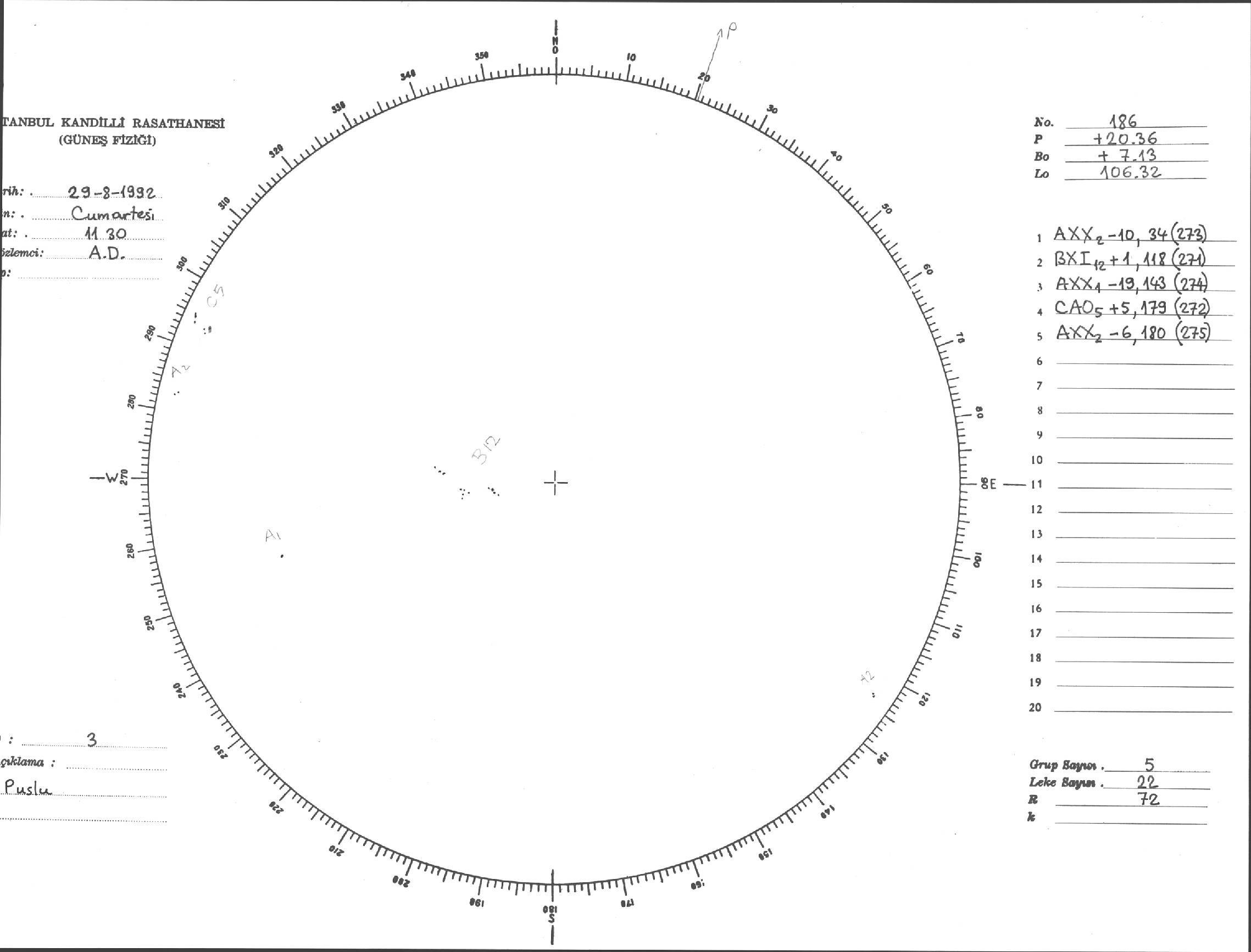 Güneş Lekesi Çizimi - 29.08.1992
