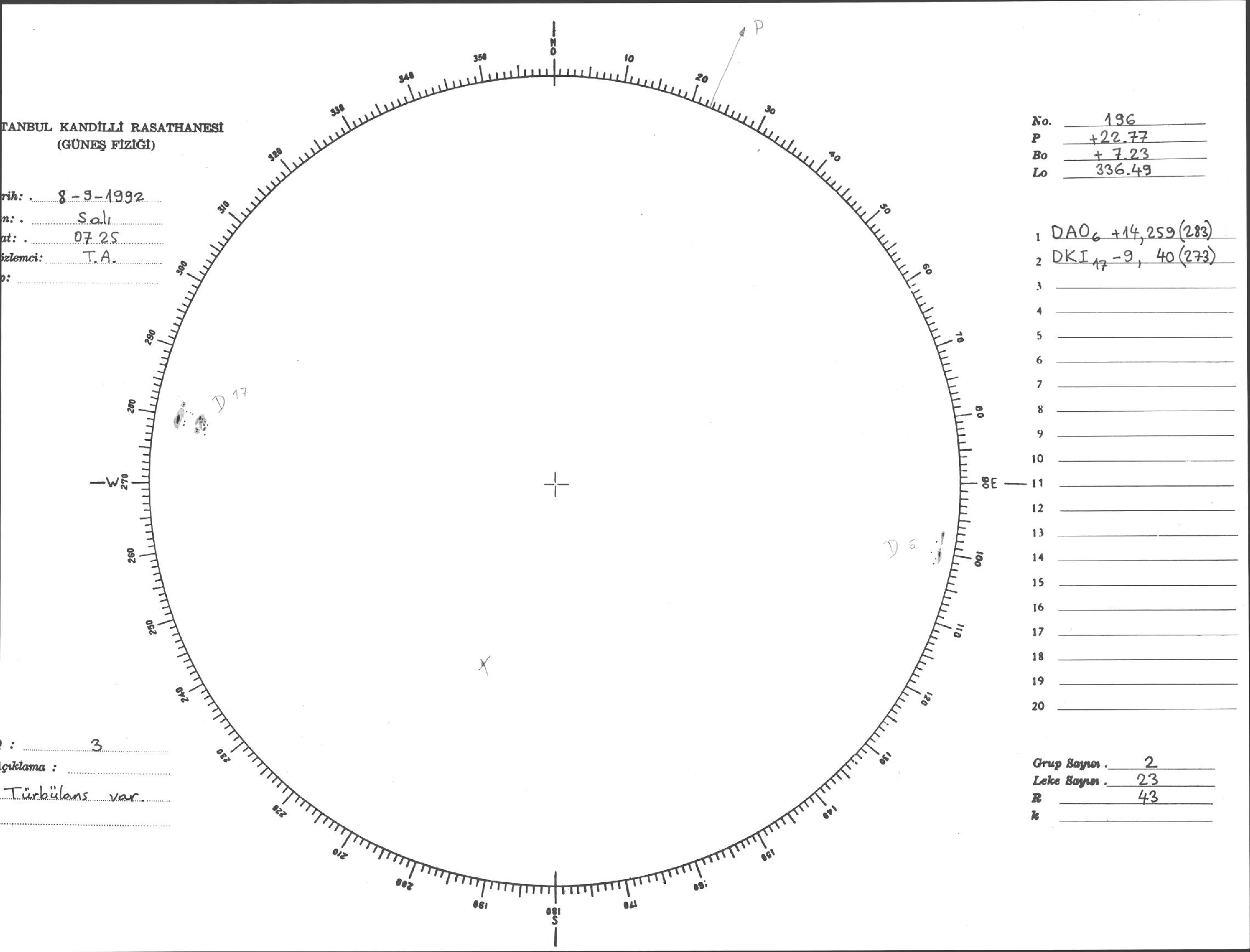 Güneş Lekesi Çizimi - 08.09.1992