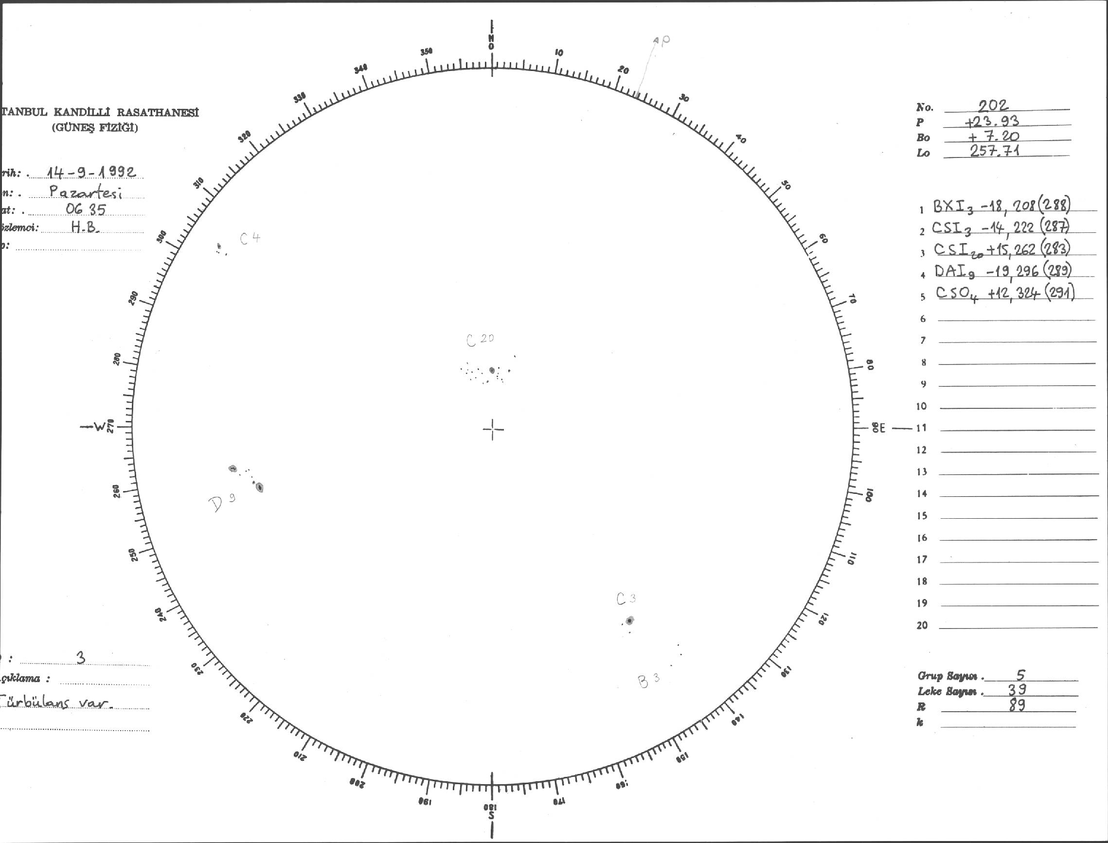 Güneş Lekesi Çizimi - 14.09.1992