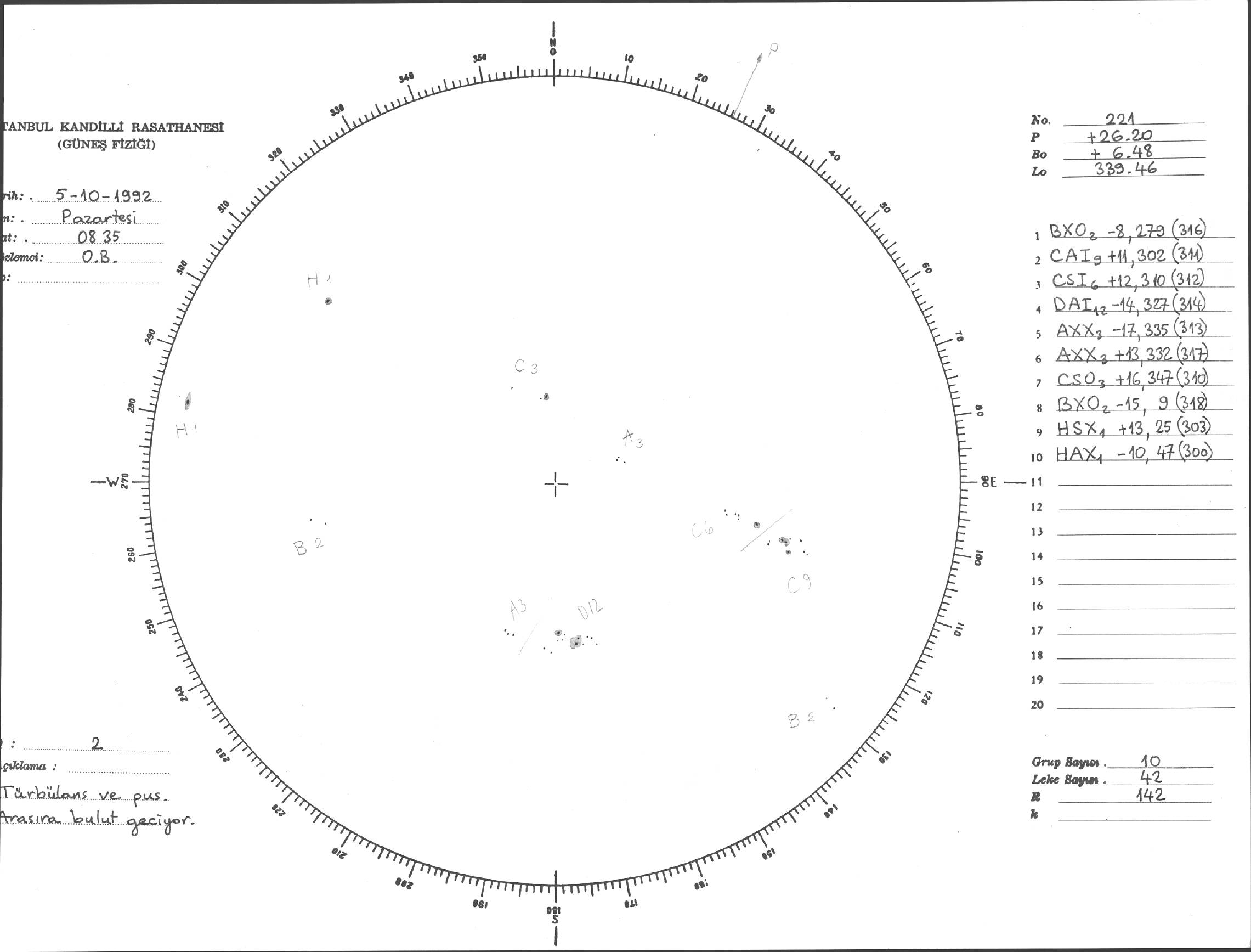 Güneş Lekesi Çizimi - 05.10.1992
