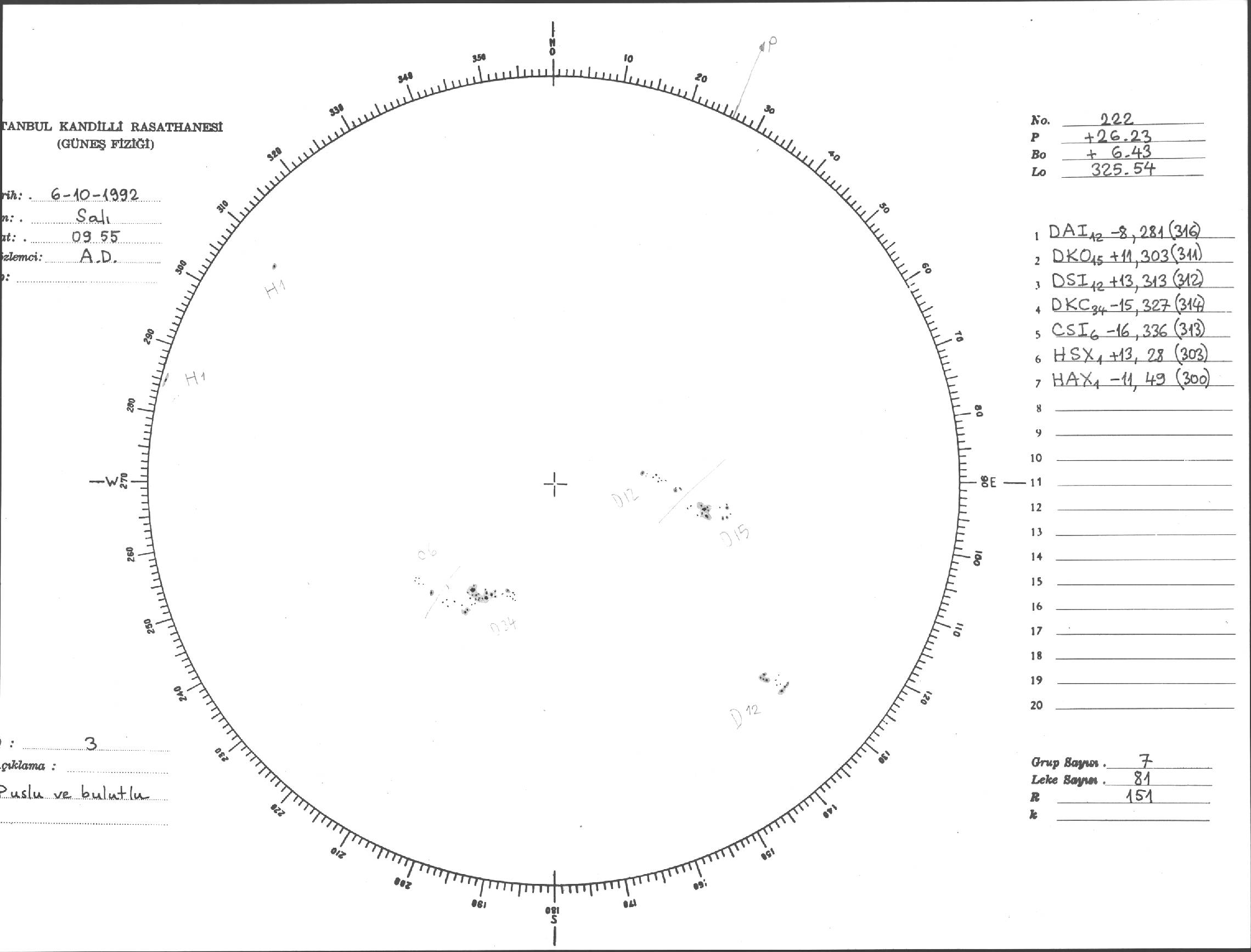 Güneş Lekesi Çizimi - 06.10.1992