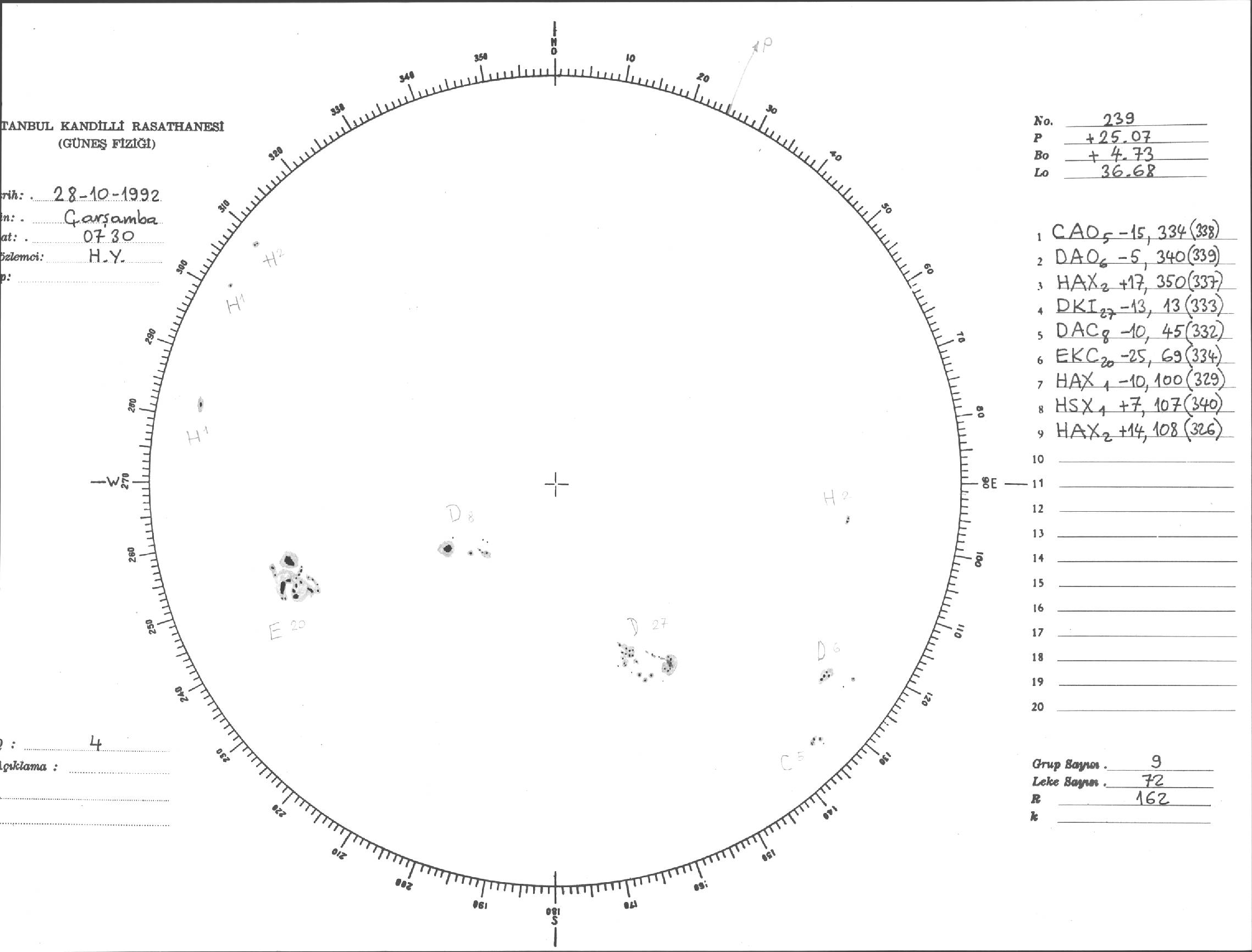 Güneş Lekesi Çizimi - 28.10.1992