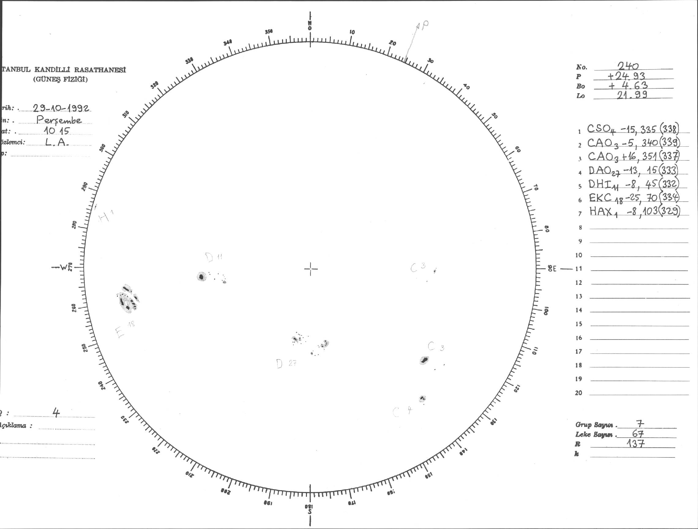 Güneş Lekesi Çizimi - 29.10.1992