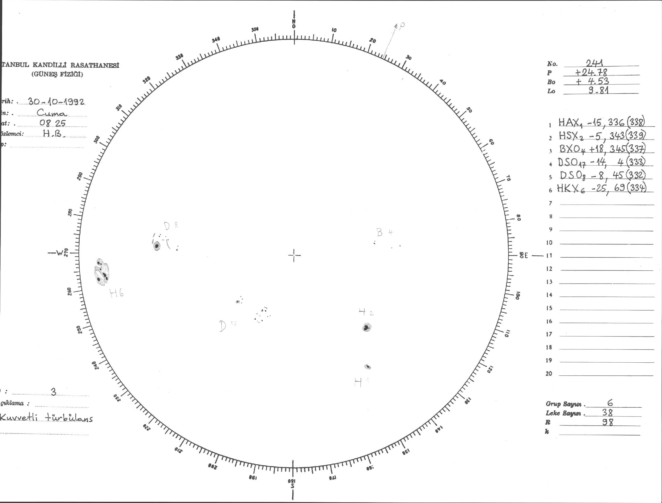 Güneş Lekesi Çizimi - 30.10.1992
