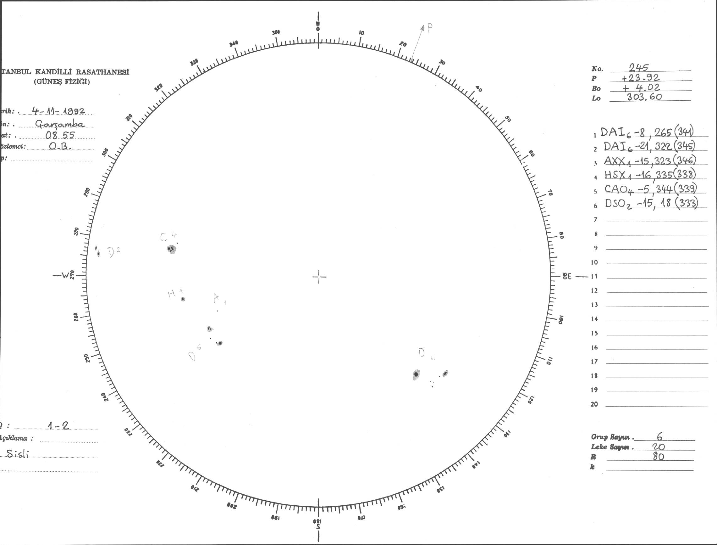 Güneş Lekesi Çizimi - 04.11.1992
