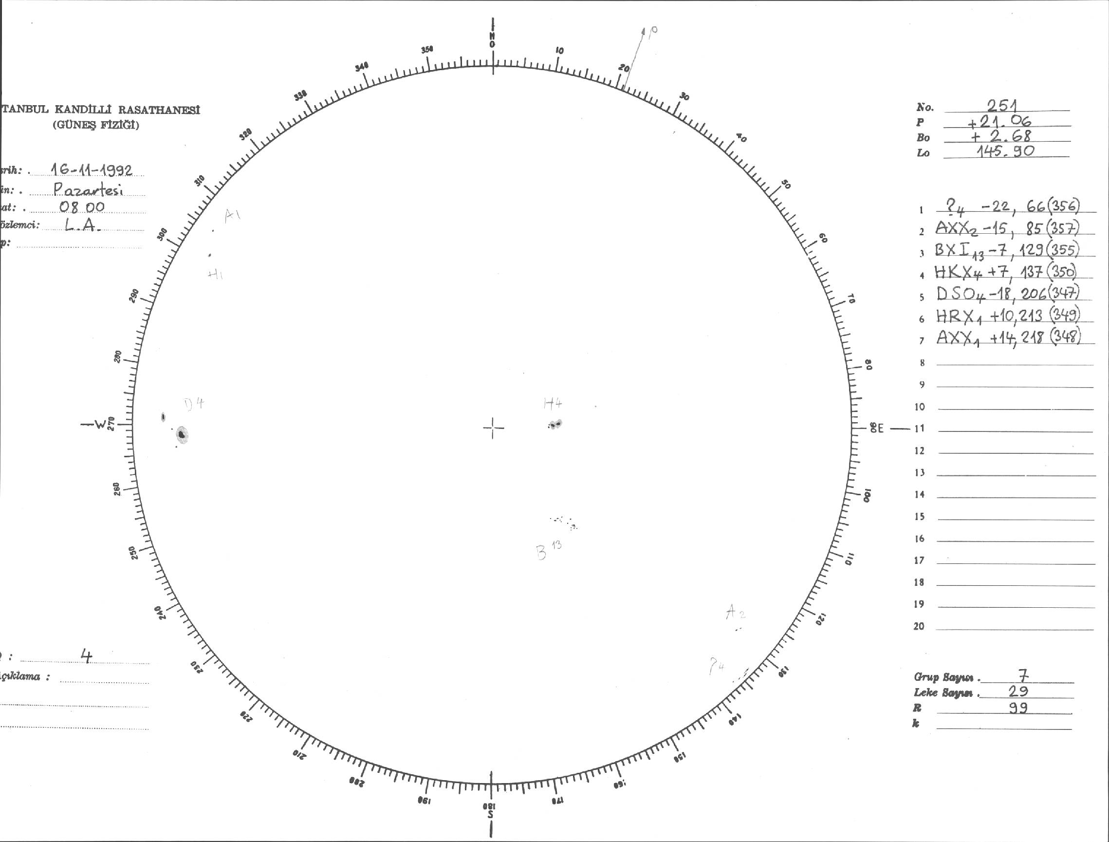 Güneş Lekesi Çizimi - 16.11.1992